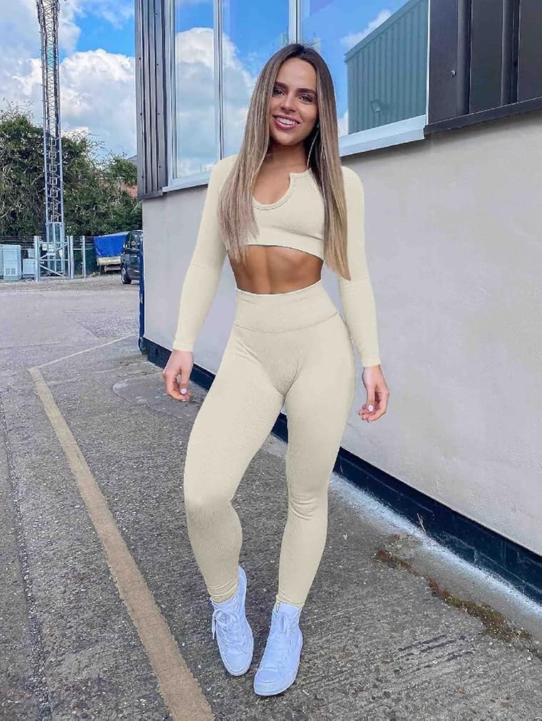 90% Nylon, 10% Polyester Imported Pull-On closure Machine Wash 90% Nylon+10% Spandex. 2 Piece Crop Tops+1 Piece Legging, Easy to match multiple styles [Main Fabric] - This 3 piece outfits cut from lightweight, sweatproof baby ribbed fabric that doesn’t compromise on comfort, is also seamless ensuring a smooth overall finish. High elasticity, Comfortable, Breathable,Dry,The 4-way stretch to promote both compression and butt lifting, upper leg muscles and reduce muscle vibrations are designed to flatter your silhouette whilst providing a supportive fit. [Super Flattering] - Seamless knit fabric, teamed with a stay-put high waistband tummy control,contours your curves and shape your body.Ribbed textured non-slip design that can keep it in place when you walk around.designed for both strength and style. [Thick material]-Very soft and comfy.Tops and leggings is thick enough non see through, crop tops is very supportive. Squat proof! The triangular design of crotch provide ample coverage as you move from pose to pose and prevent thighs from rubbing. Leggings crotch for greater freedom of movement,without sacrificing support and durability. [Thick material]-Very soft and comfy.Tops and leggings is thick enough non see through, crop tops is very supportive. Squat proof! The triangular design of crotch provide ample coverage as you move from pose to pose and prevent thighs from rubbing. Leggings crotch for greater freedom of movement,without sacrificing support and durability. Show more