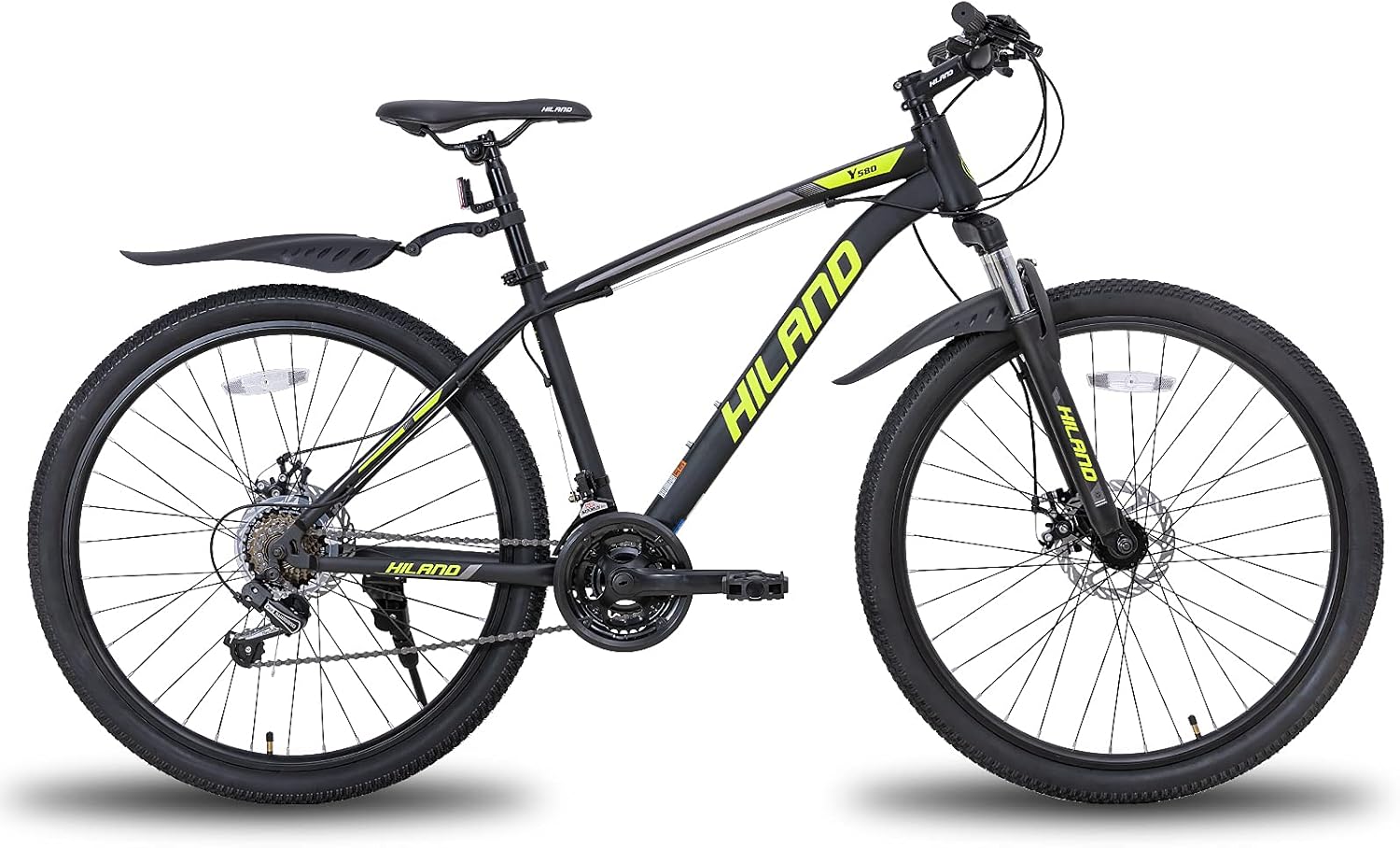 About this item This fits your . Make sure this fits by entering your model number. P.when("ReplacementPartsBulletLoader").execute(function(module){ module.initializeDPX(); }) 【Tech Frame】High carbon steel frame and a powerful suspension fork are forming a strongly trunk which provide you with a durable and stable riding experience. 【Brake&Shifter】Double Disc-Brake system was made up with 21-speed shifter and SHIMANO TY21 rear derailleur that ensure total controlling when you are in any riding situation. 【High quality fork】Dual aluminum rims with suspension fork have a strong grip. These help you make a great ride experience on mountain roads, highways and forest. 【Easy to install】Hiland bike is 85% pre-assembled. It’s easy to assemble with free pedals and all required assembly tools. This kind of bike has free front and rear fenders protect you from dirt. 【Size S】is suitable for a person 5'- 5'3 tall, 【Size M】is suitable for a person5'3- 6' tall. 【Size L】is suitable for a person 5'5 -6'1 tall,【Size XL】is suitable for a person 6'1 -6'6 tall.