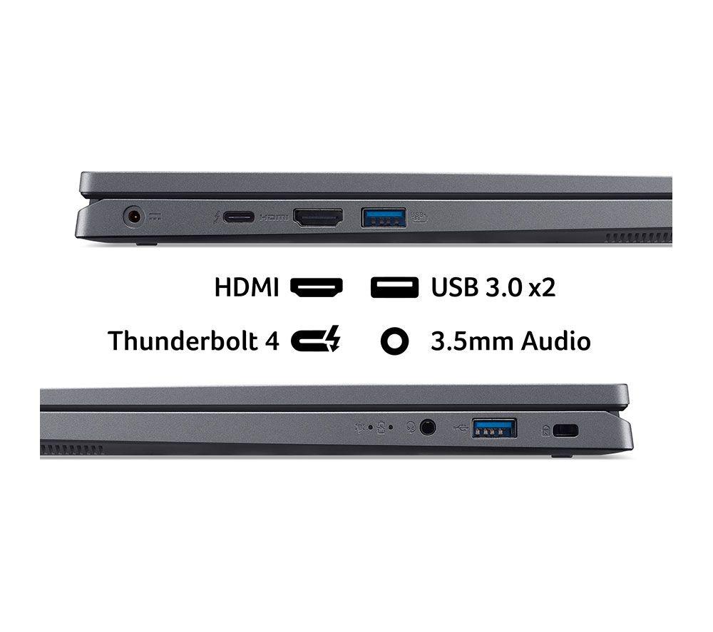Get stuff done with the Aspire 14. It can chew through spreadsheets, school assignments and even some casual gaming. Its 14" Full HD+ screen is great for work and catching up on Netflix. The 12th gen Intel® Core™ 5 processor inside is powerful enough to handle all your apps, documents and browser tabs. And the Thunderbolt 4 port lets you connect to almost anything – from super-fast SSDs, to 4K monitors. Good to know - The Windows Hello fingerprint reader is much faster and more convenient than a password - Browse, stream and download faster than ever before, thanks to WiFi 6E - With up to 10 hours of battery life, you can leave the charging brick at home ___________________________________________________________________________ Intel, the Intel logo, Celeron, Intel Atom, Intel Core, Intel. Experience What's Inside, Intel Inside, the Intel Inside logo, Intel Unite, Iris, Pentium, Thunderbolt, the Thunderbolt logo, and Ultrabook are trademarks of Intel Corporation in the U.S. and/or other countries.