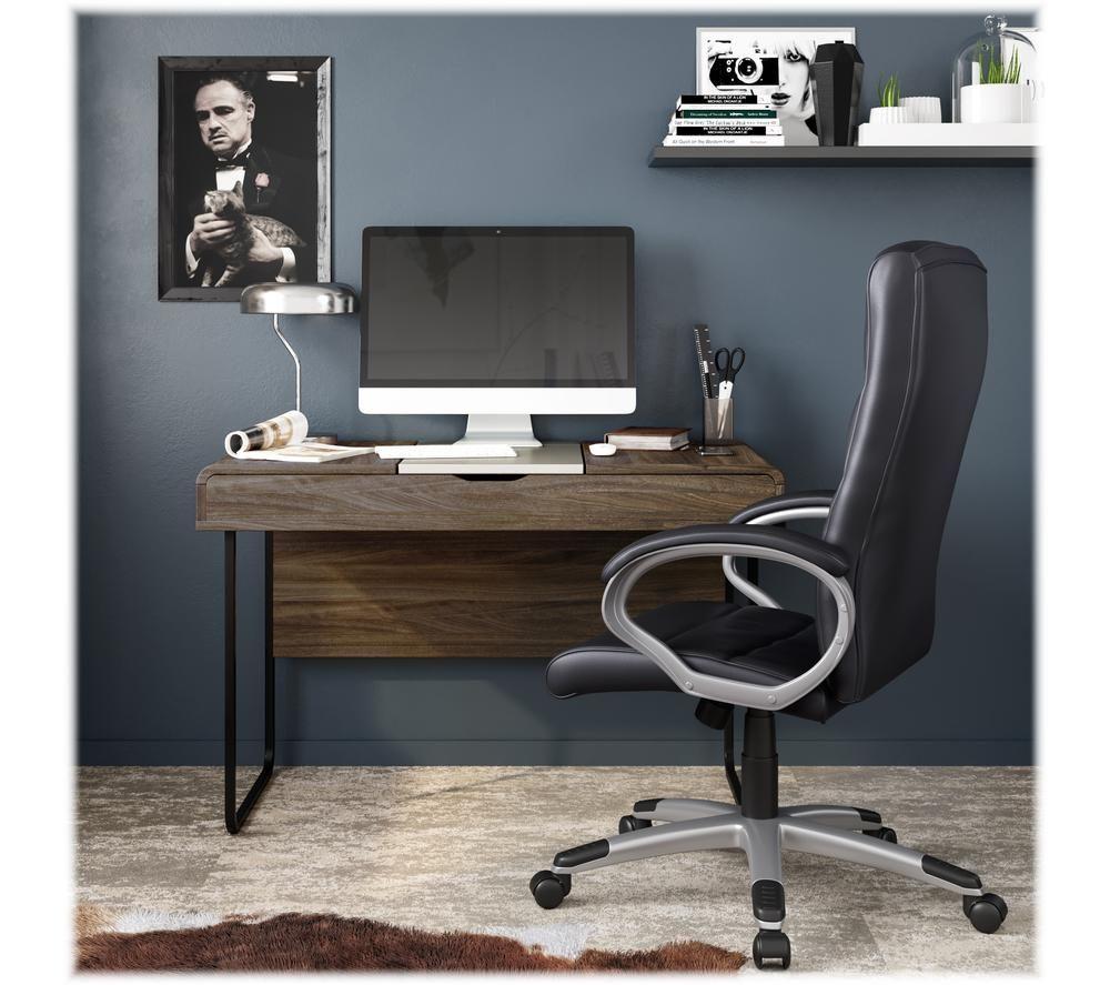 Good to know- Its foam-padded backrest, seat and armrests keep you comfortable while you work- The genuine leather finish gives the chair an elegant look that will last for years- The adjustable height and tilt mean you can easily find the best position