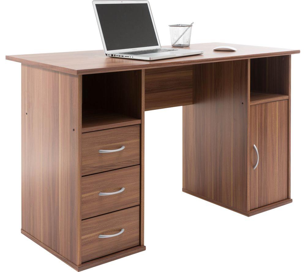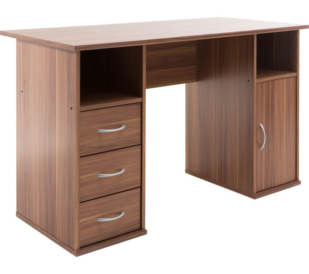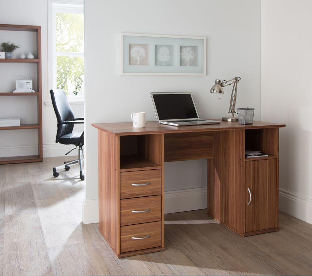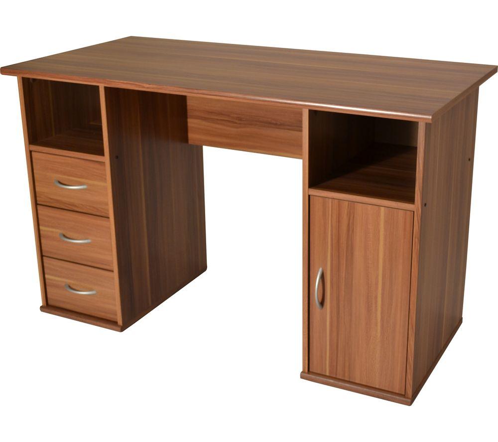 Add storage and style to your home office with the Alphason Maryland Desk.This computer desk features three drawers and a cupboard plus two storage compartments – enough to store all of your paperwork and accessories. Self-assembly is simple so you'll be up and running in no time, and the chrome handles on the desk add a touch of refinement.