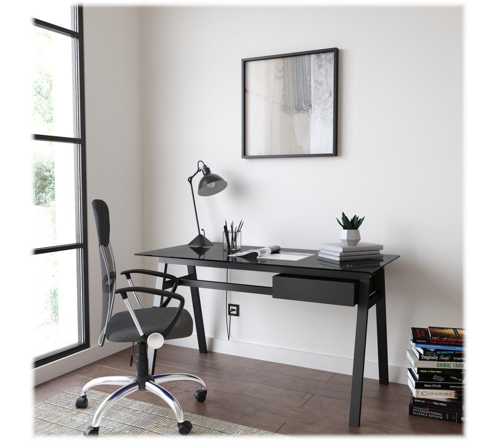 Good to know- With its smooth coloured glass worktop and stylish painted metal frame, the Alphason Richmond will look great in your office or home- It has a large under-desk drawer that provides plenty of storage space for your paperwork- Self-assembly is simple, so it'll be ready to use in no time