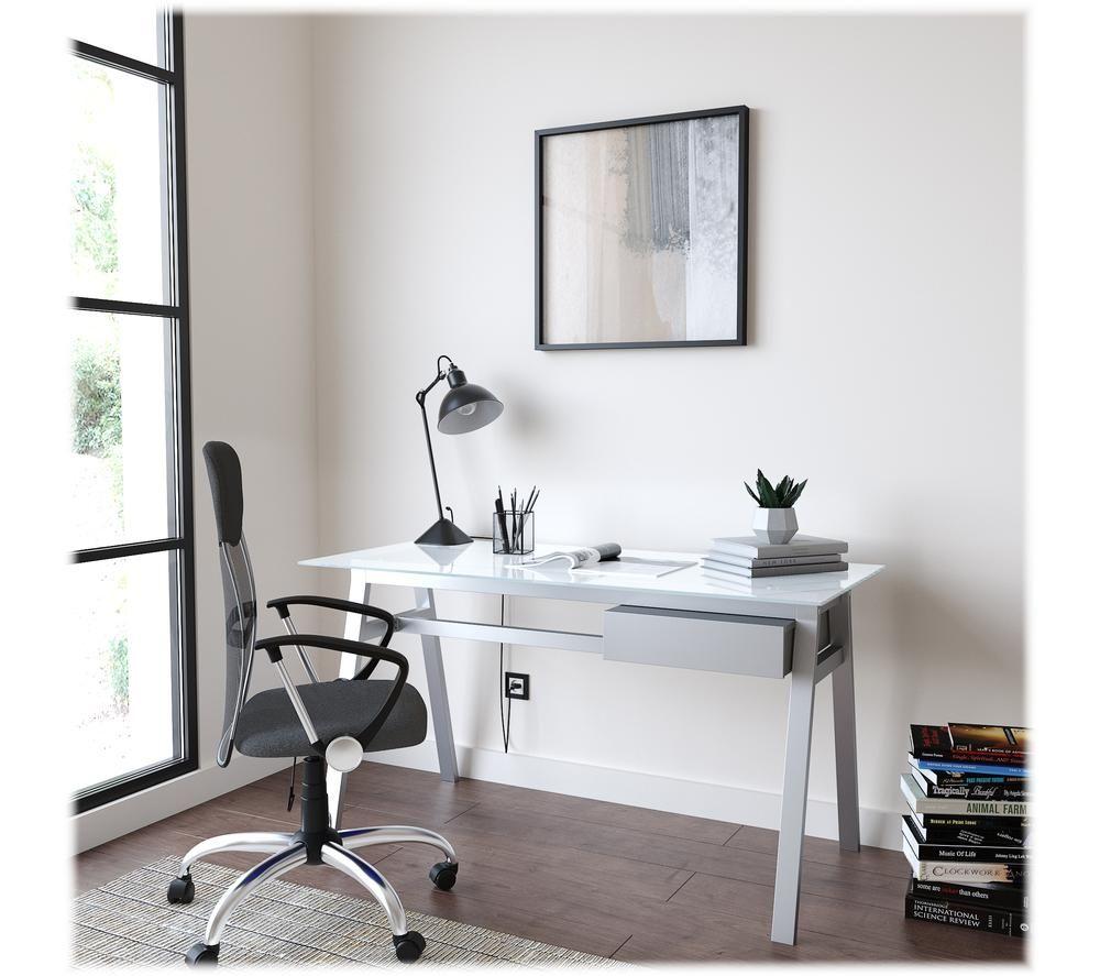 Good to know- With its smooth coloured glass worktop and stylish painted metal frame, the Alphason Richmond will look great in your office or home- It has a large under-desk drawer that provides plenty of storage space for your paperwork- Self-assembly is simple, so it'll be ready to use in no time