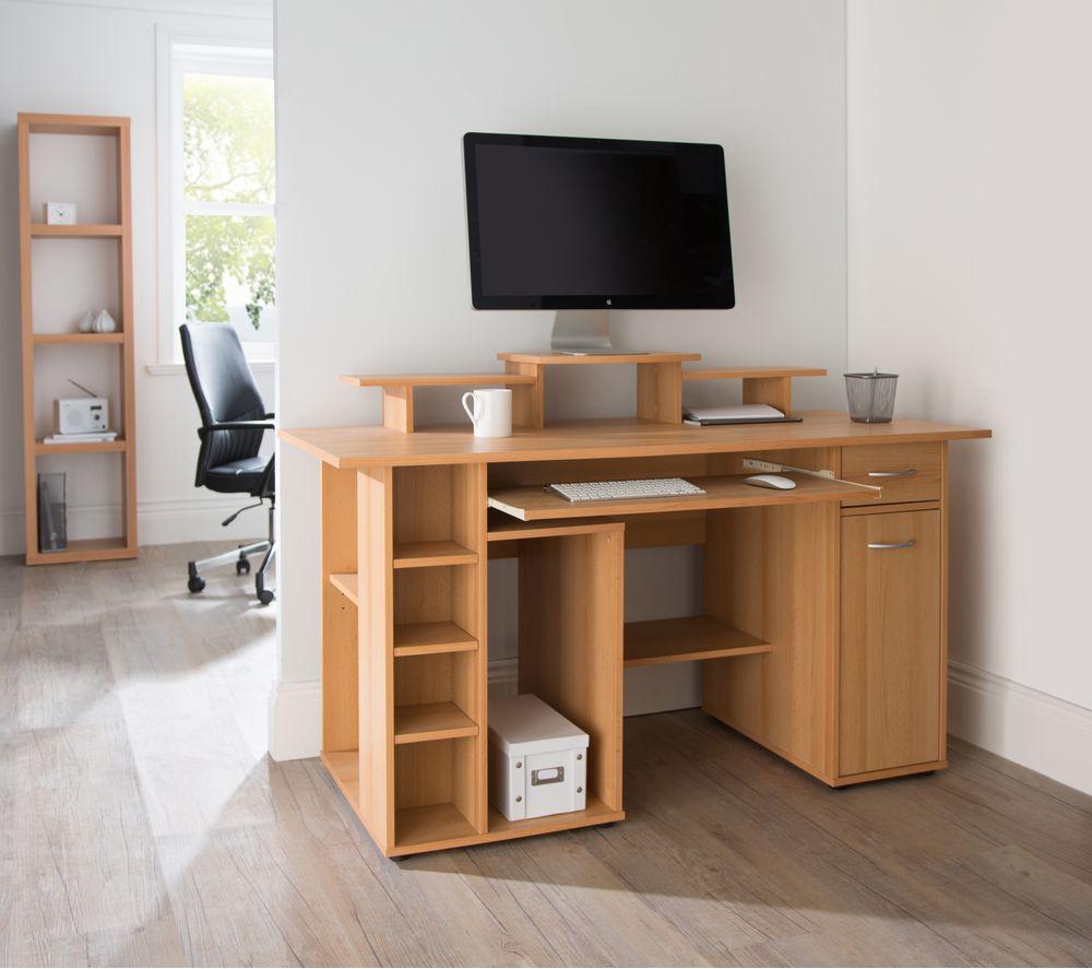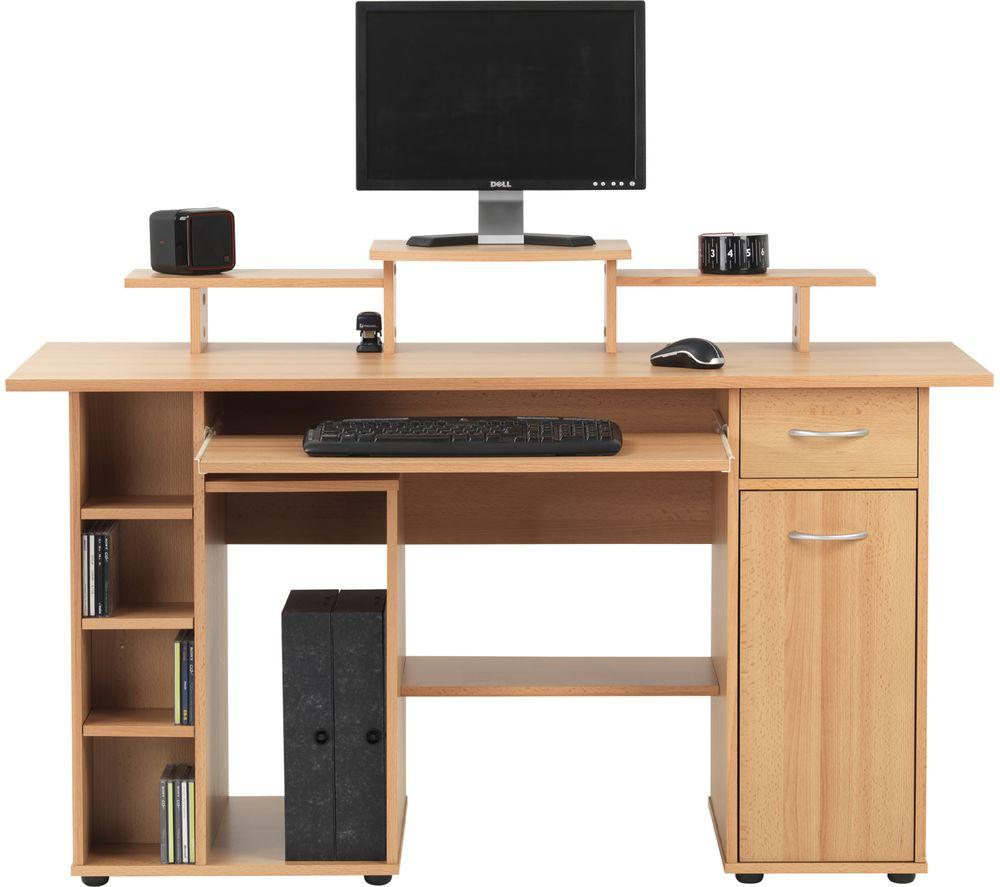 Add a touch of practicality to your home or office workstation with the Alphason San Diego Desk.Alongside the stationery drawer and storage cupboard there are an additional six storage compartments for your accessories, paperwork and more.The top of the computer desk features a three-stepped raised platform suitable for monitors. There's also a pull-out keyboard shelf, while the desk also features hidden feet to protect floors and carpets.
