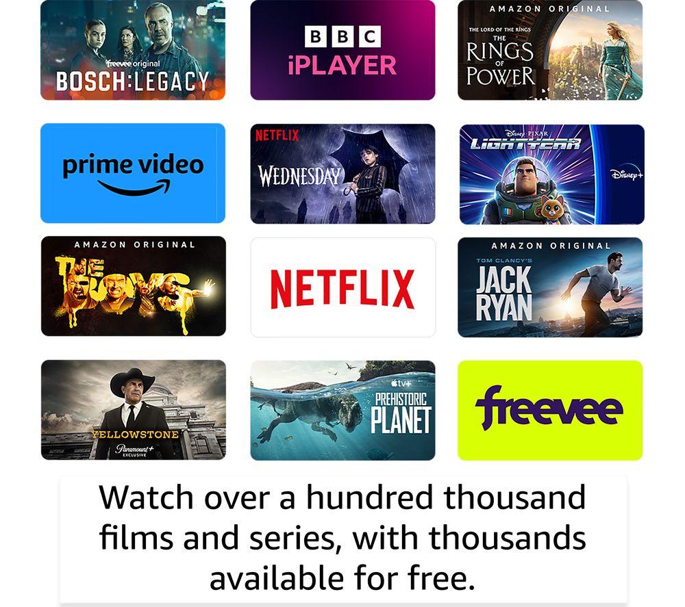 Good to know- Watch live TV and stream over 100,000 movies and TV shows from Prime Video, Netflix and more, right from the Home screen- Use the Fire TV Alexa voice remote to search for movies, check the football scores and control compatible smart devices- Get stuck into loads of free-to-view entertainment on YouTube, Freevee and Pluto TV- Enjoy seamless viewing across your Fire TV devices - pause your movie in the living room and pick up where you left off in your bedroom- Kids in bed? Connect your Bluetooth headphones and lose yourself in the latest gripping drama without waking anyone up- Play free games on Amazon Luna and download more from the Amazon app store________________________________Please note: Some apps & services (including tuner) are only available in the UK. Apps & services may be removed or no longer supported by third party content providers at any time. Some apps & services may not be available at launch and may require a firmware update before becoming available. Some services require an account and/or subscription fee.