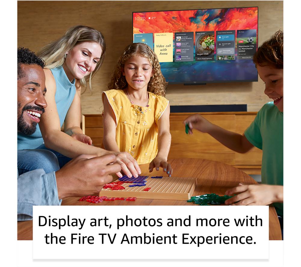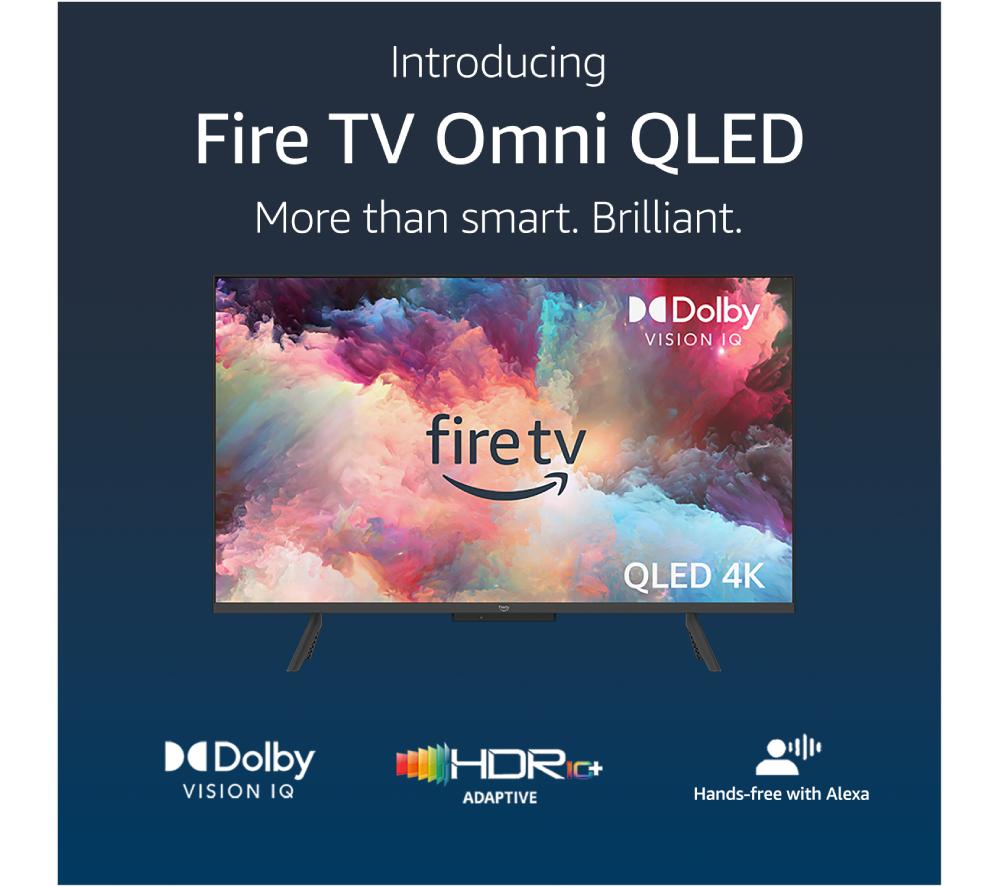 The Amazon Omni Series Fire TV is more than just a smart TV. The 4K QLED display is super sharp and makes everything pop with bright, vivid colours. And then there's HDR technology for realistic colours, shadows, and details. Dolby Vision IQ and HDR10+ Adaptive also make clever use of the built-in light sensor to adapt the contrast and brightness to the light in the room. So, you'll be able to pick out details in the darkest of thrillers. It's easy to use too. You'll find all your favourite streaming apps, like Prime Video, Netflix, and Disney+, on your personalised home screen. Simple.Good to know- The Ambient Experience can display artwork, photos, music, and widgets when you're not watching stuff- Alexa is built-in so you can search, control your smart home, and much more using just your voice – new skills are being added all the time- Because privacy is important, there's a mic-off switch and you can view, hear or delete your voice recordings in the Amazon app- No console? No problem. You can stream games from Amazon Luna or download them from the app store – there's something for everyone- Catch-up on shows you've missed straight from the TV guide with Freeview Play________________________________Please note: Some apps & services (including tuner) are only available in the UK. Apps & services may be removed or no longer supported by third party content providers at any time. Some apps & services may not be available at launch and may require a firmware update before becoming available. Some services require an account and/or subscription fee.