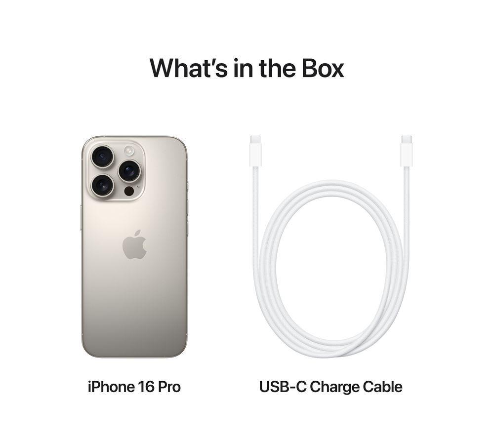 iPhone 16 Pro is built for Apple Intelligence. It helps you write, express yourself and get things done easily. Its stunning titanium design is lightweight and durable. Camera Control gives you handy access to camera tools, like zoom or depth of field, so you can take the perfect shot right away. Record cinema-worthy shots with support for 4K 120 fps Dolby Vision video. And the A18 Pro chip is incredibly powerful and efficient for stellar, all-day performance. Good to know -STUNNING TITANIUM DESIGN — iPhone 16 Pro has a strong and light titanium design with a larger 6.3-inch Super Retina XDR display. It's remarkably durable with the latest-generation Ceramic Shield front that's 2x tougher than any smartphone glass. - BUILT FOR APPLE INTELLIGENCE — Apple Intelligence is the personal intelligence system that helps you write, express yourself, and get things done effortlessly. With groundbreaking privacy protections, it gives you peace of mind that no one else can access your data. Coming December 2024. - TAKE TOTAL CAMERA CONTROL — Camera Control gives you an easier way to quickly access camera tools, like zoom or depth of field, so you can take the perfect shot in record time. - PRO VIDEO—Take your videos a whole new level with 4K 120 fps Dolby Vision—enabled by the 48MP Fusion camera—and studio-quality mics for higher-quality audio recording. A Pro studio in your pocket. - MAGNIFICENT SHOTS — Take your videos to a whole new level with 4K 120 fps Dolby Vision, enabled by the 48MP Fusion camera. The improved 48MP Ultra Wide camera lets you capture mesmerising detail in macro pics and wide angle photos. - PHOTOGRAPHIC STYLES — The latest-generation Photographic Styles give you greater creative flexibility, so you can make every photo even more you. And thanks to advances in the image pipeline, you can now reverse any style, any time. - THE POWER OF A18 PRO — A18 Pro chip enables Apple Intelligence with a faster Neural Engine, improved CPU and GPU, and a big jump in memory bandwidth. It also drives advanced video and photo features and powers AAA gaming. - A HUGE LEAP IN BATTERY LIFE — iPhone 16 Pro delivers an incredibly power-efficient performance with up to 27 hours video playback. Charge via USB-C or snap on a MagSafe charger for faster wireless charging. - CUSTOMISE YOUR IPHONE — With iOS 18, you can tint your Home Screen icons with any colour. Find your favourite shots faster in the redesigned Photos app. And add playful, animated effects to any word, phrase or emoji in iMessage. - VITAL SAFETY FEATURES — With Crash Detection, iPhone can detect a serious car crash and call for help if you can't. ________________________________________________________ Please note: Apple Intelligence is available in beta on all iPhone 16 models, iPhone 15 Pro and iPhone 15 Pro Max, with Siri and device language set to English (Australia, Canada, Ieland, New Zealand, South Africa, UK or US), as an iOS 18 update. Additional features and Chinese (Simplified), English (India, Singapore), French, German, Italian, Japanese, Korean, Portuguese (Brazil) and Spanish language support available in early April, with more languages coming over the course of the year, including Vietnamese. Some features may not be available in all regions or languages.