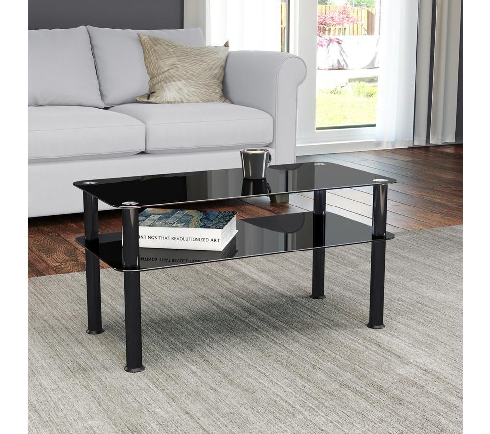 Good to know - This AVF coffee table is oh-so easy to assemble and will be up and ready in almost no time - It's got 2 shelves so you can stack your remotes or trinkets on top and use the lower shelf for books and magazines - The tempered safety glass not only looks classy but also keeps it safe from scratches and cracks