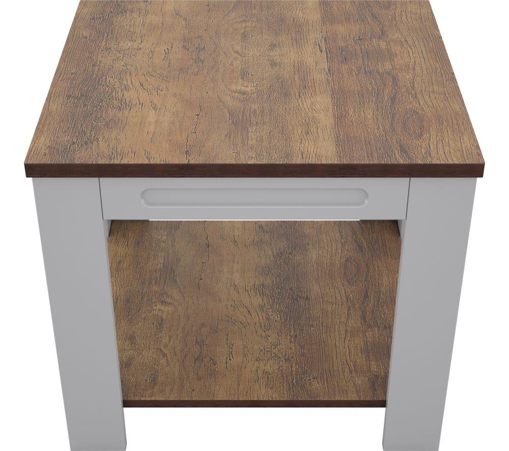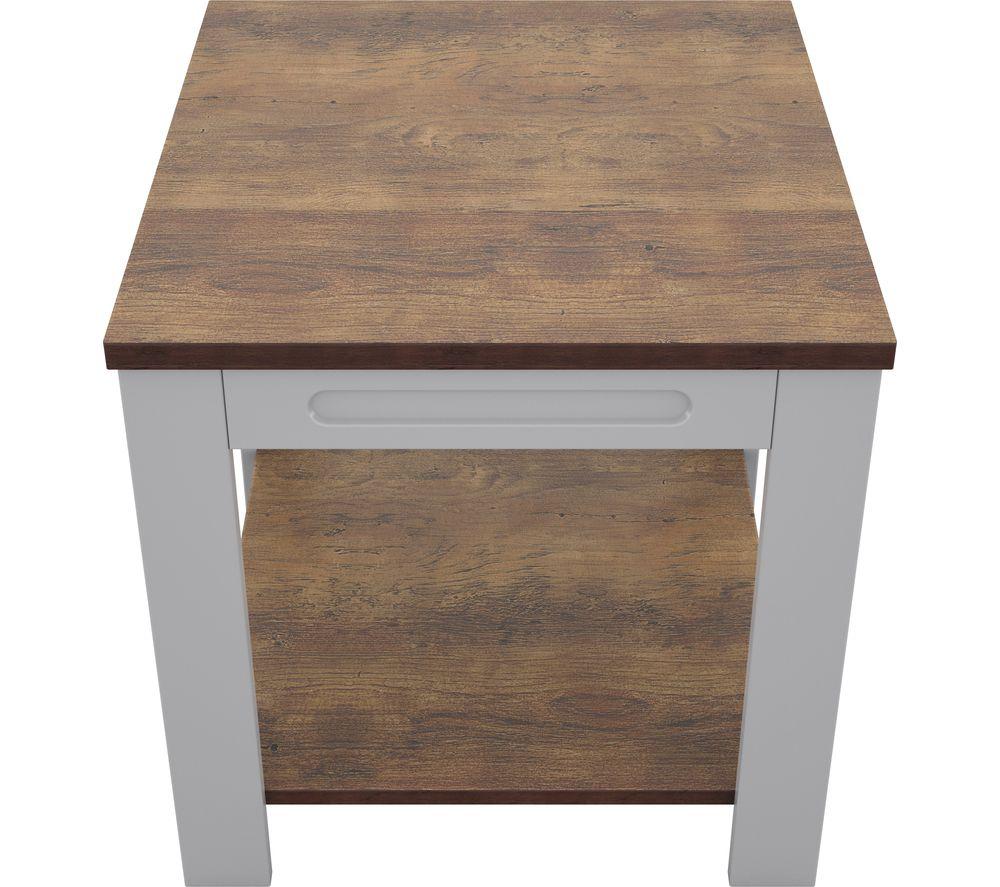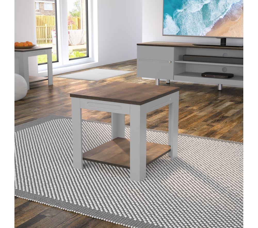 The AVF Whitesands FT50WSSG Side Table will be a practical and stylish addition to your living room. Store your accessories on the tabletop or shelf. With its grey finish and rustic wood it will fit perfectly in any corner.