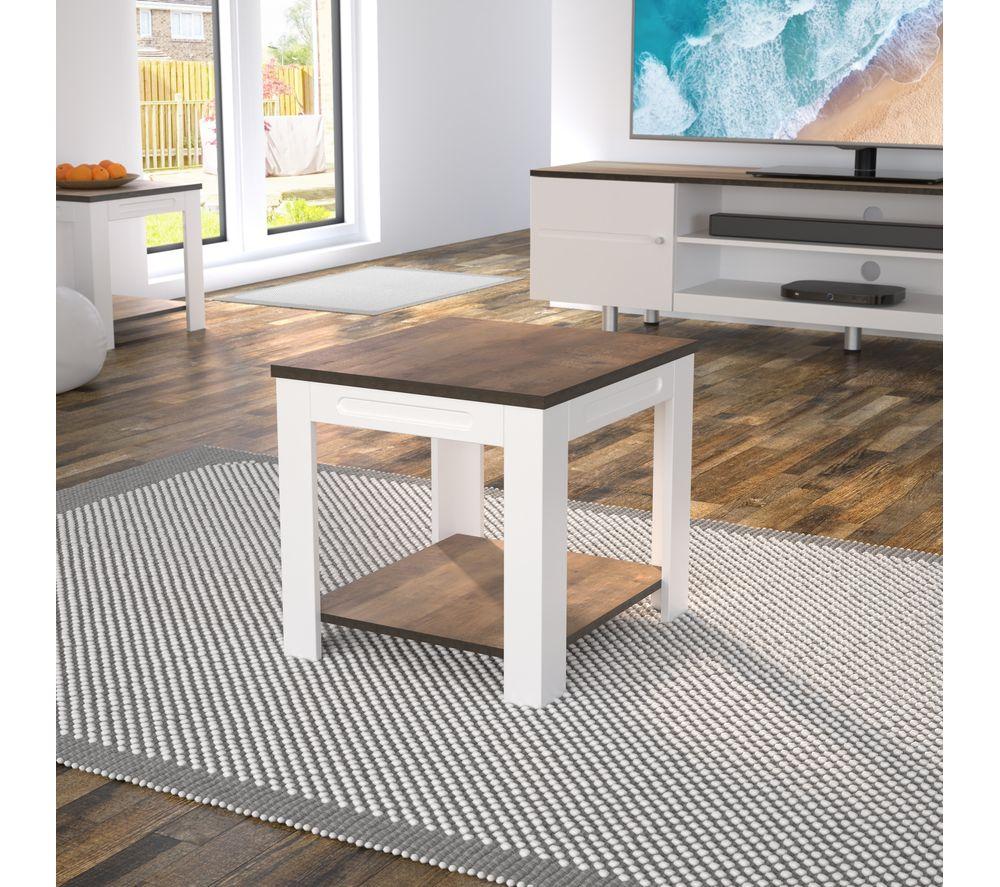 The AVF Whitesands FT50WSSW Side Table will be a practical and stylish addition to your living room. Store your accessories on the tabletop or shelf. With its white finish and rustic wood it will fit perfectly in any corner.