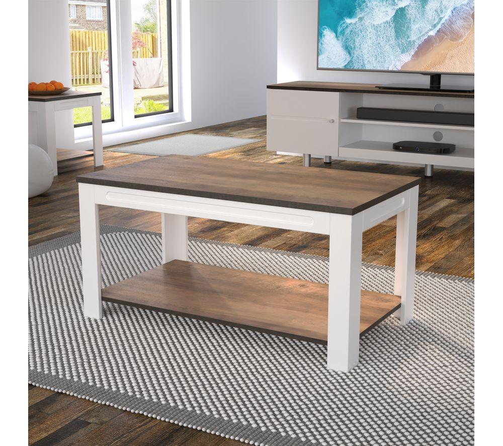 Add some traditional style to your home with the AVF Whitesands FT90WSSW Coffee Table. It has a rustic wooden top and shelf, with a satin-white finish on the sides.You can position the table in the middle of the room or against the wall. The lower shelf supports a maximum weight of 5 kg – perfect for your magazines, remote controls, accessories, and more.