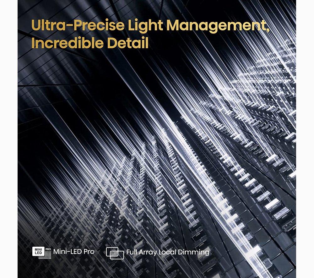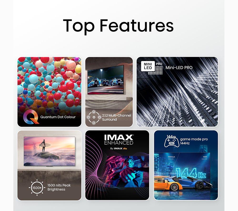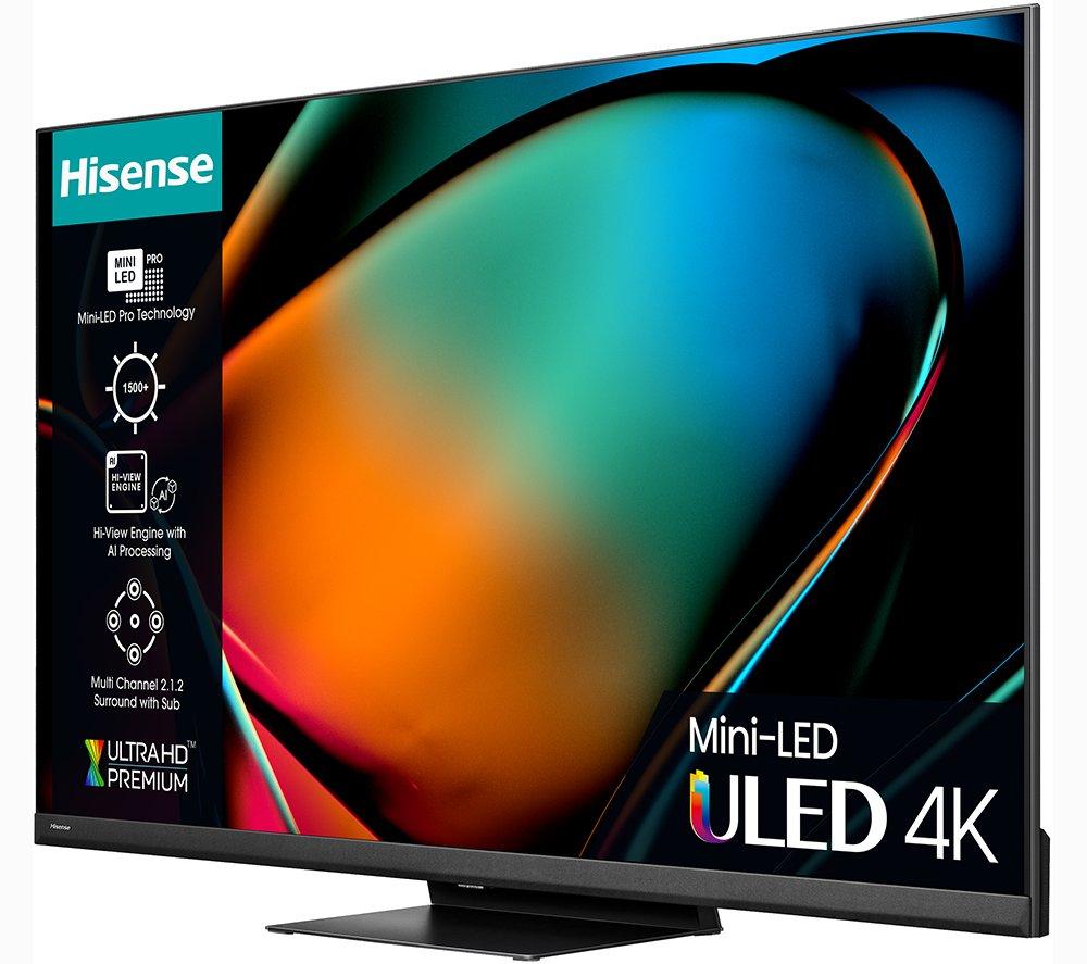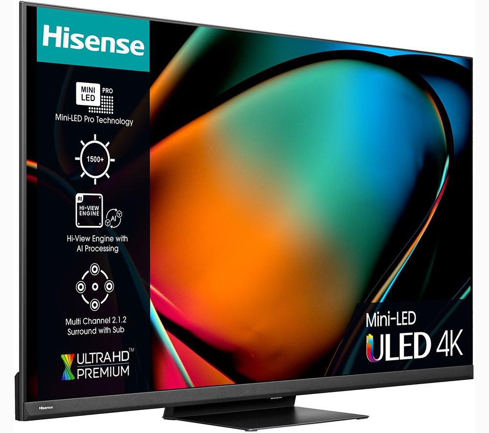 Can you imagine a billion colours? That's how many this Hisense TV can show thanks to Quantum Dot Colour technology. What that actually means is more lifelike colour - from the azure blue waters of a tropical reef to the delicate pinks in a sunset. The Mini-LED Pro display gives you a crisp, vivid picture that's packed full of detail. On top of that, Full Array Local Dimming technology enhances the contrast for darker darks and brighter brights. You'll have no problem seeing what's lurking in the shadows in those hair-raising horror movies. And for sound that matches the pictures, Dolby Atmos wraps you in a blanket of 3-dimensional sound, just like at the movies.Good to know- It supports Dolby Vision, HDR10, HDR10+ and HLG - enjoy deeper blacks, brighter whites and vibrant colours- The IMAX Enhanced certification means you won't need to go to the cinema to get that IMAX experience- Game Mode PRO gets the most out of your 144 Hz VRR and keeps you competitive in fast-paced titles- Even low-res content gets a makeover with the Hi-View Engine – it uses AI for colour enhancement and 4K upscaling- Find all your favourite content and apps on the VIDAA Smart TV platform________________________________Please note: Some apps & services (including tuner) are only available in the UK. Apps & services may be removed or no longer supported by third party content providers at any time. Some apps & services may not be available at launch and may require a firmware update before becoming available. Some services require an account and/or subscription fee.