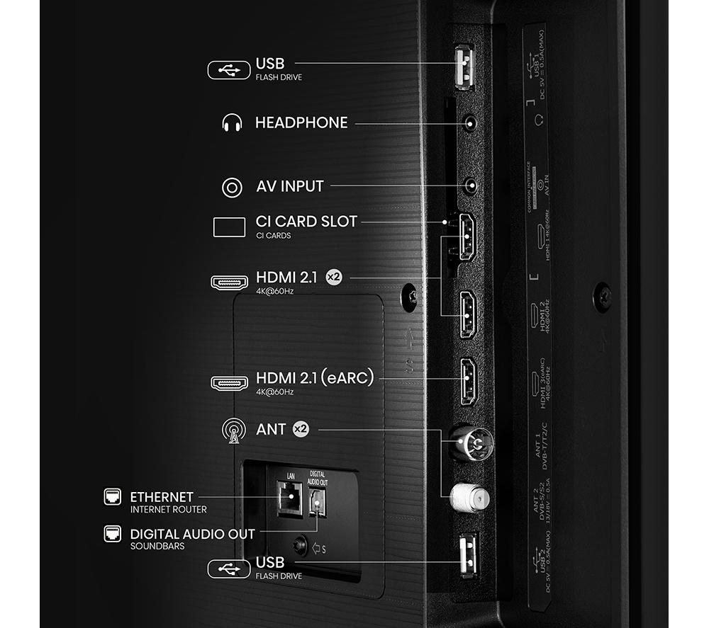 Discover the brilliance of direct lit full array on this Hisense E6N 65" TV. Tiny LEDs work together to give you edge-to-edge deep blacks, dazzling highlights and vivid colours. The Quad Core 4K processor uses AI to upgrade every frame, even making your old favourites look fresh. And with Precision Colour, everything pops with bold, vibrant hues. Good to know - Freely brings you live TV channels and on-demand content over WiFi – no aerial, no fees, no hassle - Dolby Vision HDR cranks up the contrast, so you won't miss any details, even in the shadows - Get that cinema sound at home with DTS Virtual:X and Dolby Audio support - The Adaptive Light Sensor smartly adjusts the screen brightness to match your room's lighting - Fast action, like football, looks as smooth as butter thanks to Smooth Motion - Stream content from the likes of Netflix, Disney+, and NOW on the VIDAA smart platform ________________________________ Please note: Some apps & services (including tuner) are only available in the UK. Apps & services may be removed or no longer supported by third party content providers at any time. Some apps & services may not be available at launch and may require a firmware update before becoming available. Some services require an account and/or subscription fee.