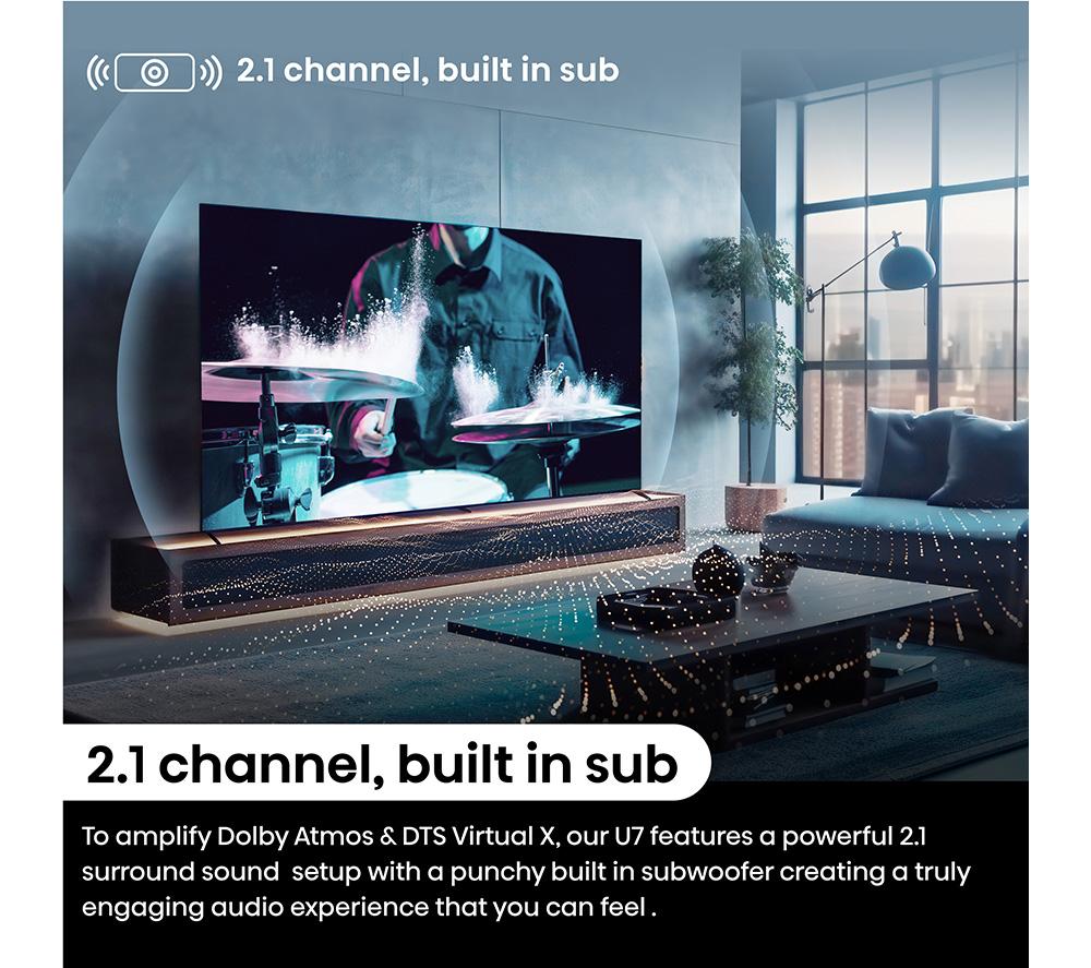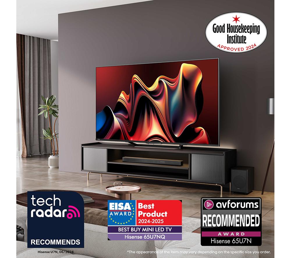 Mini LEDs deliver big drama on this Hisense U7N TV. Thousands of tiny LEDs work in harmony across hundreds of dimming zones for incredibly precise control. No more washed-out looking shows – it's bright and dark in all the right places. The Hi-View Engine is the brains of the operation, turning the mundane into the magnificent by boosting the colours and contrast. Even older films look like they were shot yesterday thanks to 4K AI upscaling. And with Quantum Dot tech, you'll be served up over a billion shades of vivid colours. It really makes documentaries and sport pop.Good to know- Freely brings you live TV channels and on-demand content over WiFi – no aerial, no fees, no hassle- With support for popular HDR formats like Dolby Vision and HDR10+, you're covered for most streaming services- Dolby Atmos serves up a virtual surround sound experience, so you'll feel like you're in the heat of the action- The 2.1 sound system with built-in sub helps you make the most of the Atmos and DTS Virtual:X tech- Stay ahead in the game with the smooth, ultra-responsive 144 Hz Game Mode Pro- IMAX Enhanced brings home the thrill of the cinema with a brilliant picture and immersive audioWhy we love it"The Mini-LED PRO tech with Quantum Dot Colour makes games, films, shows and sports even more lifelike. With over a billion shades of realistic colour, everything from Spiderman's suit to the shirts of your favourite team should really look the part." - Will, Product Copywriter