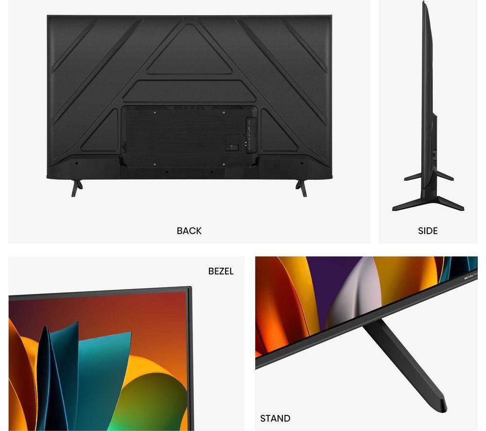 Dramas just got a lot more intense on the Hisense A6N TV. Individual LEDs are precisely controlled on the direct lit full array display. That means deep blacks and bright highlights from edge to edge that are always on point. The Quad Core 4K processor uses AI to boost the picture frame by frame – even older content gets an upgrade. And with Precision Colour, everything looks bolder and brighter with a wider range of hues. So, whatever you're watching, you can be sure it looks its best.Good to know- Freely brings you live TV channels and on-demand content over WiFi – no aerial, no fees, no hassle- Dolby Vision HDR boosts the contrast, so you'll see more details – like enemies lurking in the shadows- Make the most of your movie nights with support for DTS Virtual:X and Dolby Audio- The Adaptive Light Sensor adjusts the screen brightness to suit the light in your room- Fast-paced action, like football, looks super fluid thanks to Smooth Motion- Stream content from the likes of Netflix, Disney+, and NOW on the VIDAA smart platform________________________________Please note: Some apps & services (including tuner) are only available in the UK. Apps & services may be removed or no longer supported by third party content providers at any time. Some apps & services may not be available at launch and may require a firmware update before becoming available. Some services require an account and/or subscription fee.