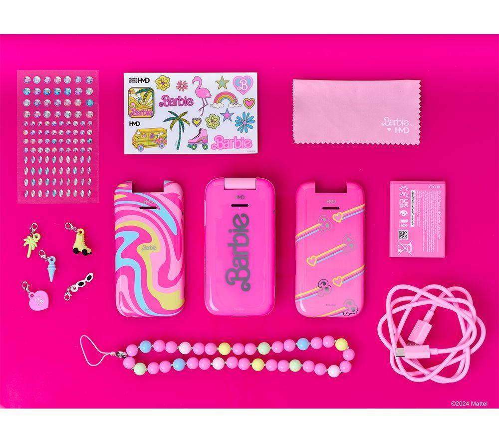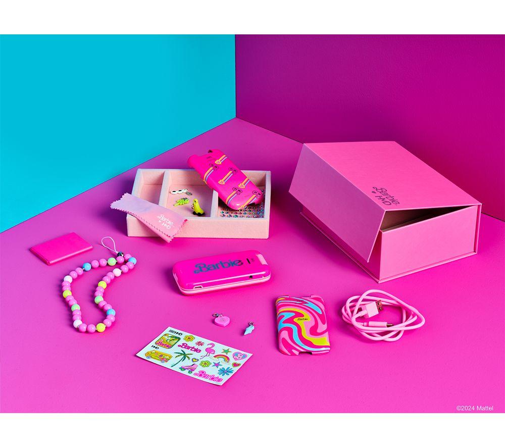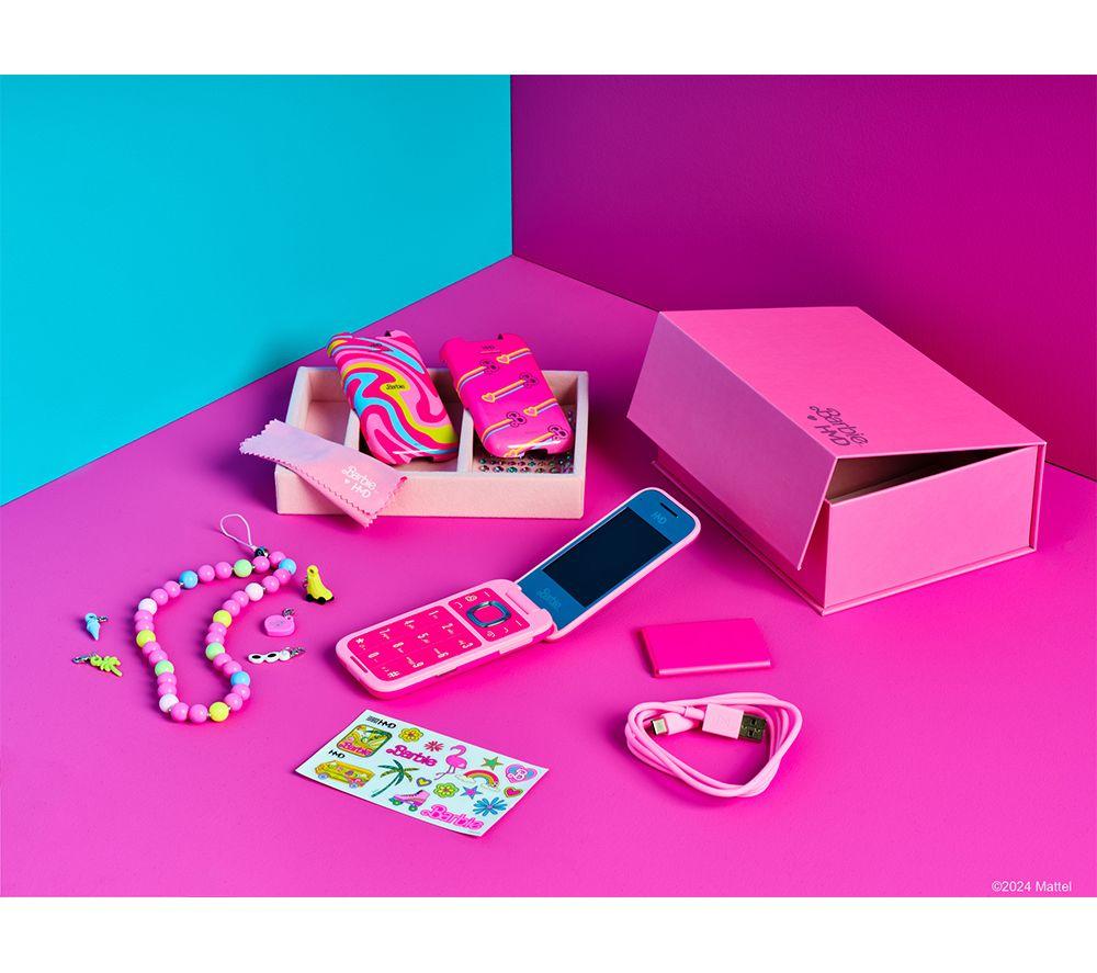- Give your smartphone a break – this Barbie flip phone gives you all the basics but no distracting apps - The operating system has been glammed up with a Barbie theme, so it's fun inside and out - To capture the moments you don't want to miss, there's a camera on the back - It's got a nice and colourful 2.8" screen and a secondary screen on the cover for time and date - There are 2 SIM slots, so you can have your personal and work number on the same phone - It comes with swappable backs, attachable charms, gem stickers and more, so you can make it your own