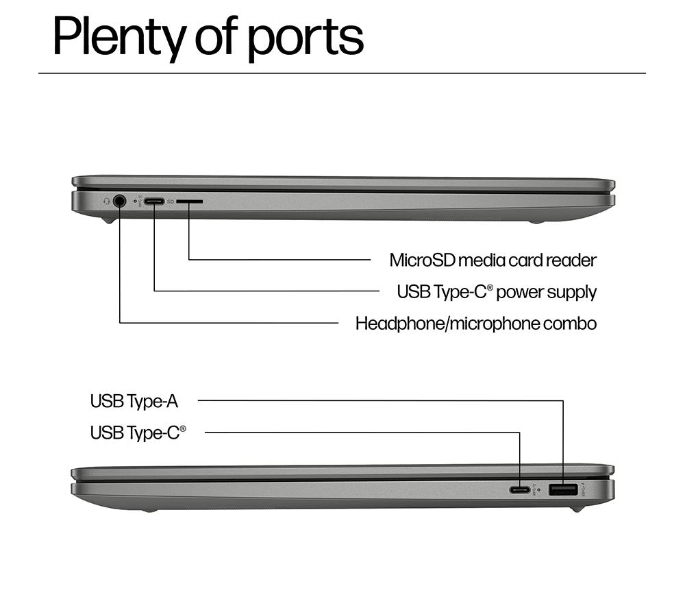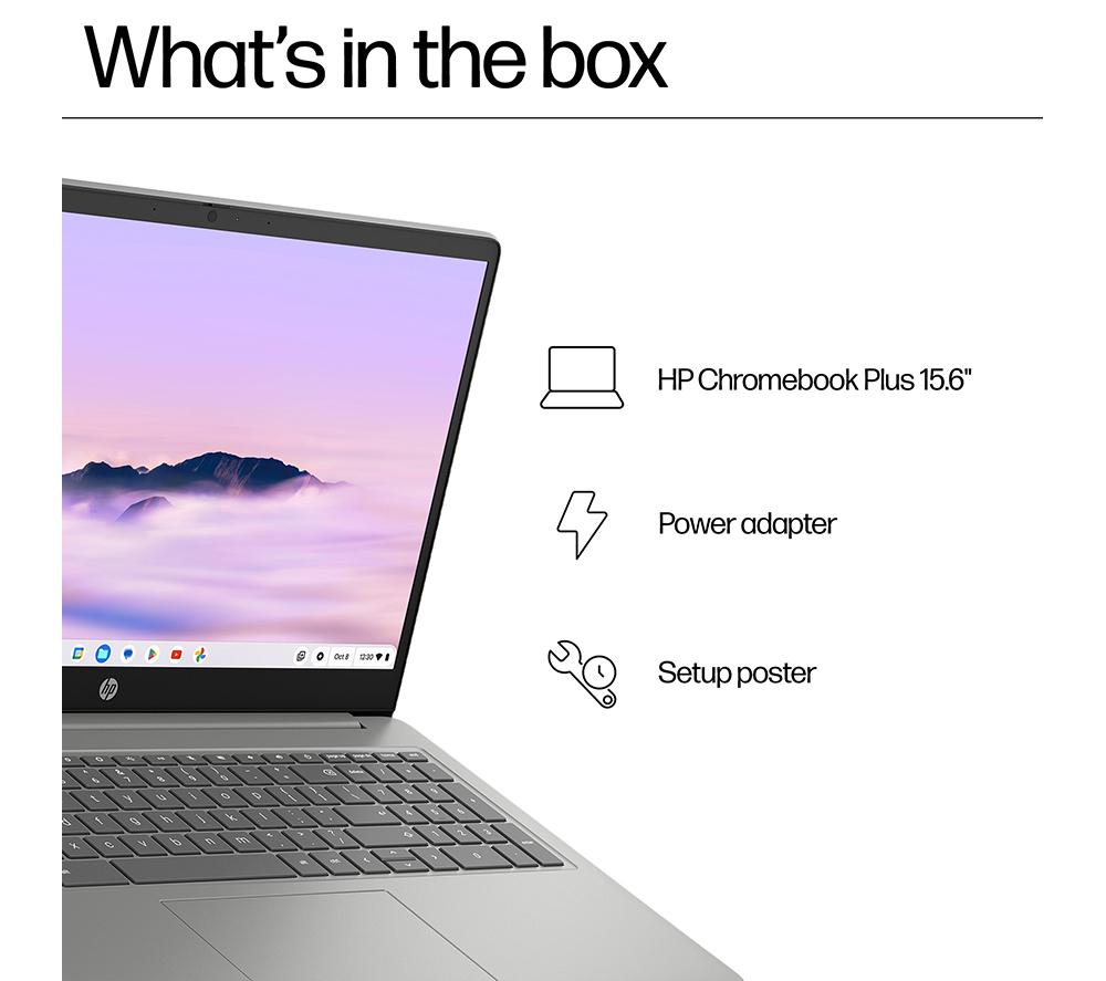 Just because ChromeOS keeps things simple doesn't mean you have to make compromises. All your must-have tools like Word and Excel are right here as apps. The Intel® Core™ i3 processor has enough power to keep things running smoothly. Forget scrambling for outlets at cafes. Its battery lasts for up to 13 hours, so it's great for working on the go. And when you do run out of power, HP Fast Charge gets the laptop from 0 to 50% in just 45 minutes. Good to know - 8 GB of DDR5 RAM lets you run multiple apps at the same time and loads of browser tabs- Its Full HD screen has vibrant colours and wide viewing angles, so it's great for kicking back with a movie- The 128 GB SSD storage will give you speedy access to all your essentials - For connecting to monitors, you've got options – use the DisplayPort or one of the 2 USB Type-C ports- Load up websites and videos in no time thanks to WiFi 6 - Google's H1 security chip is just one of the reasons why Chromebooks are so resistant to viruses- Look your best in online meetings with the True Vision Full HD webcam- Set up your home office anywhere – the anti-glare display can handle a bit of sunlightWhy we love it "More efficient power managment makes this a laptop that'll easily last all day long. So, you can leave the charger at home this time!" - Will, Product Copywriter ___________________________________________________________________________ Intel, the Intel logo, Celeron, Intel Atom, Intel Core, Intel. Experience What's Inside, Intel Inside, theIntel Inside logo, Intel Unite, Iris, Pentium, Thunderbolt, the Thunderbolt logo, and Ultrabook are trademarks of Intel Corporation in the U.S. and/or other countries.