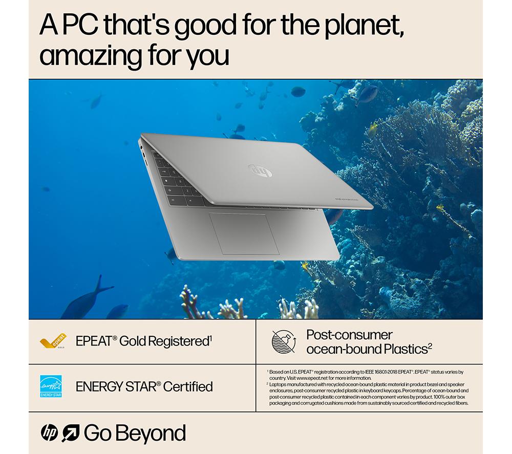 Intel® UHD GraphicsSmoothly stream 4K content and play your favorite games in 720p, without the need for a dedicated graphics card. With excellent Intel® UHD graphics performance, you'll see the difference in everything you do.4FHD IPS displayEnjoy crystal-clear images from any angle. With 178° wide-viewing angles and a vibrant 1920 x 1080 resolution, you'll always have a great view of your favorite content.5Ocean-bound plasticBuilt with the environment in mind, our laptop design includes sustainable materials like ocean-bound plastic in the speaker enclosure and recycled aluminum.6
