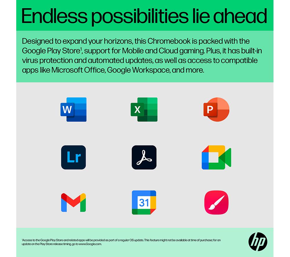 Effortless productivity anywhereGet everything done with up to an Intel® processor1, built-in Google apps, long lasting battery life2 and plenty of storage.