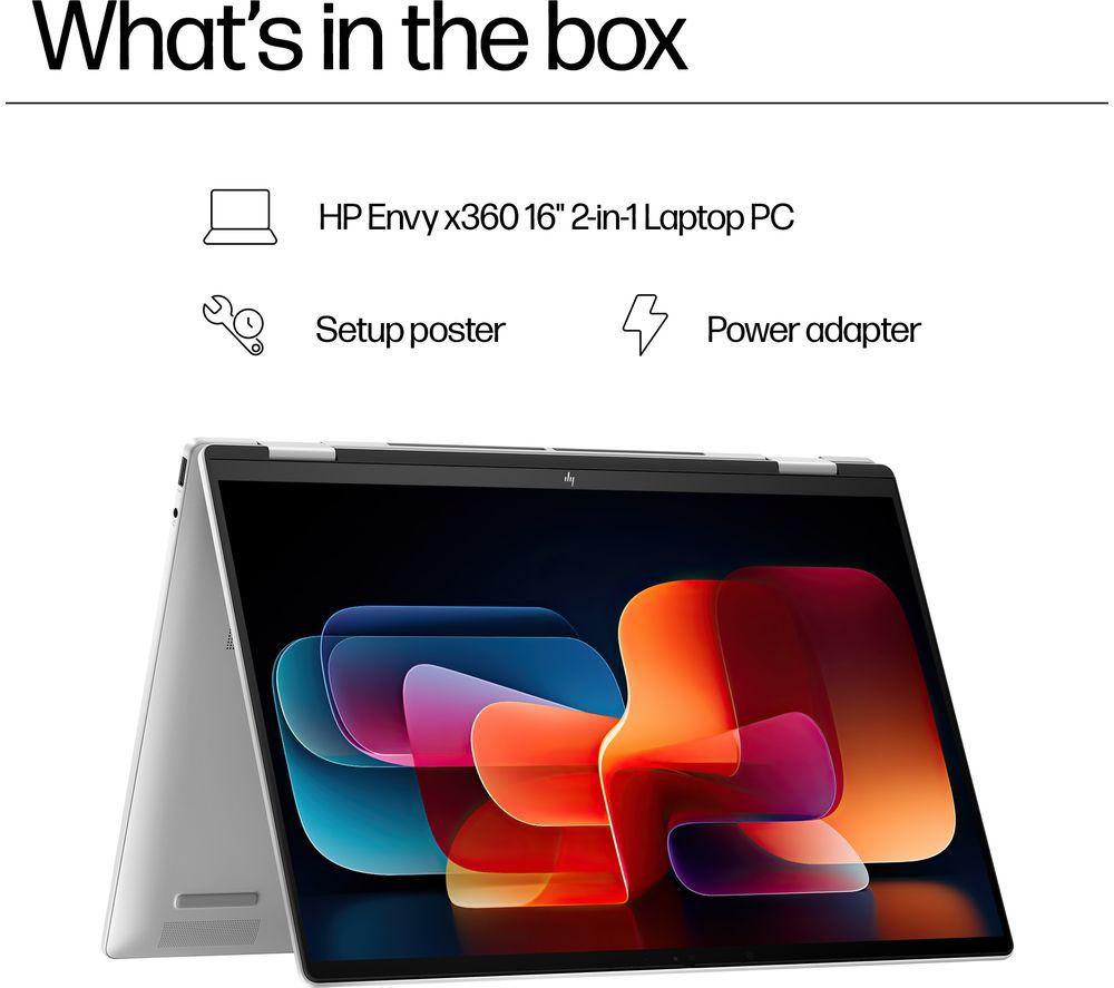 There's no need to choose between a laptop and tablet anymore. With its 360-degree hinge, the HP ENVY x360 offers the best of both worlds. Powered by the Intel® Core™ Ultra 5 processor, it's super-fast and accelerated by AI to be even smarter. Perfect for speeding though work or school assignments. And when you're done, there's a Full HD+ touchscreen. You can swipe through Netflix until you find the perfect show. It's got beautiful colours and high brightness, so you're in for a treat. Good to know - Look your best on work calls - the 5 MP webcam features AI Noise Reduction so you'll be seen clearly by your colleagues - Windows Hello facial recognition is faster and safer than typing in a password - Load up websites and videos in no time thanks to Intel® WiFi 7 - 16 GB of DDR RAM lets you run multiple apps at the same time, including loads of browser tabs - The 512 GB SSD lets you store everything you need and loads up files in an instant ___________________________________________________________________________ Arc, Arria, Celeron, Cyclone, eASIC, Intel Ethernet, Intel,the Intel logo, Intel Agilex, Intel Atom, Intel Core, Intel Evo, Intel Inside, the Intel Inside logo, Intel Optane, Intel vPro, Iris, Killer, MAX, Movidius, Pentium, Intel Select Solutions, Intel Si Photonics, Stratix, the Stratix logo, Tofino, Ultrabook, Xeon are trademarks of Intel Corporation or its subsidiaries.