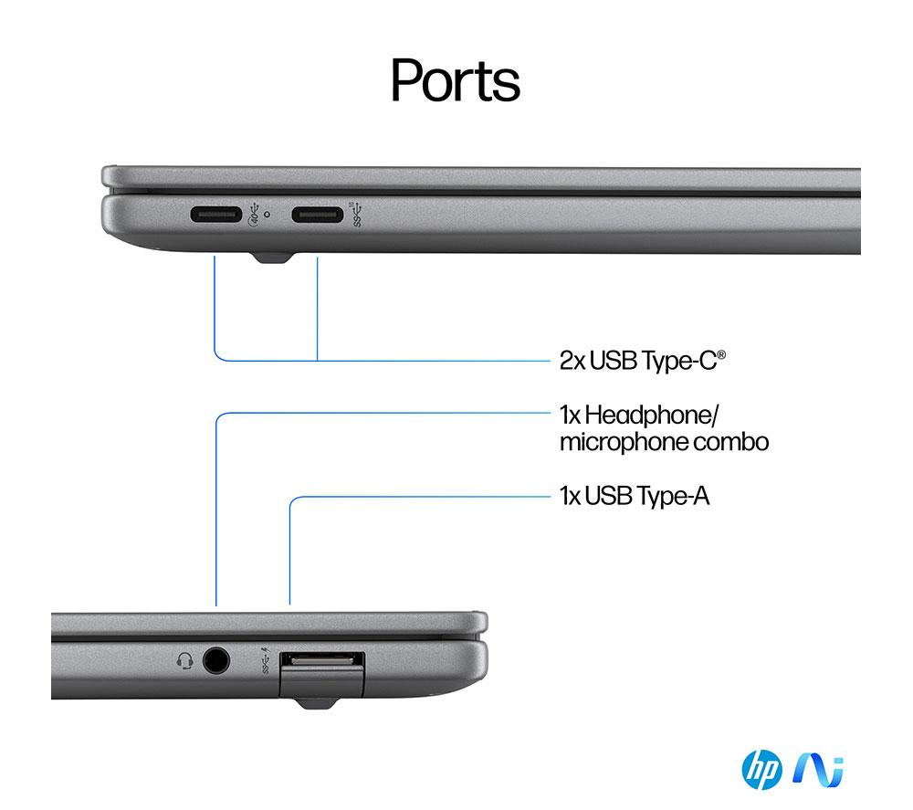 Based on HP’s internal analysis as of next gen PC’s with a 40-60 TOPS NPU as of (current date). Battery life tested by HP using continuous FHD video playback, 1080p (1920x1080) resolution, 200 nits brightness, system audio level as image default, player audio level at 100%, played full-screen from local storage, headphone attached or through speaker (if no audio jack port), wireless on but not connected. Actual battery life will vary depending on configuration and maximum capacity will naturally decrease with time and usage.