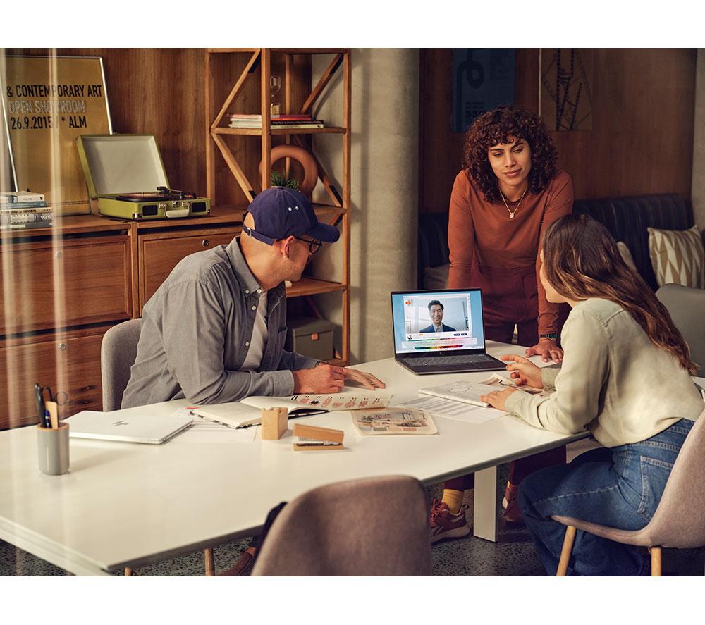 Collaboration tools for genuine connectionsElevate each call with a 5MP camera, Windows Studio effects4, 14” touchscreen, and Poly Studio audio tuning.