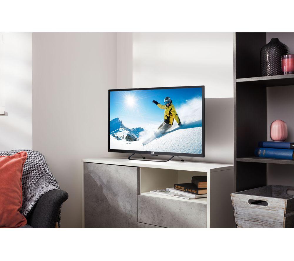 - Watch all your favourite Freeview HD channels on this JVC TV – no subscription needed- Sound is given a boost with DTS TruSurround technology – great for movies and sports- The HD Ready LED display is nice and bright with excellent contrast- There are 2 HDMI ports for connecting set top boxes, consoles, and other devices- Plug your flash drive into the USB port to play videos, display photos, or listen to music________________________________Please note: Freeview and some services are only available in the UK. This non-smart TV does not include a smart platform, streaming apps, or other smart services.