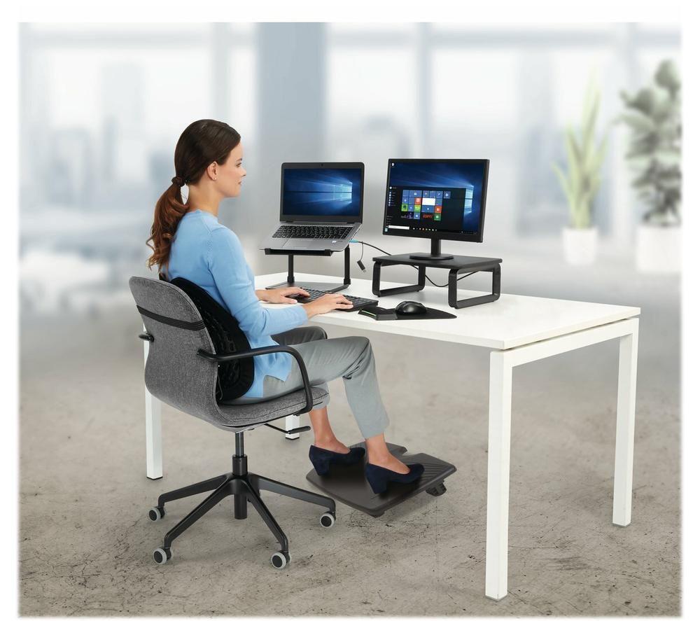 The Kensington SoleRest Footrest is ideal for reducing stress in your legs and lower back while you're working at your desk. It's height-adjustable with 12 different height and angle positions, so you can place your feet in a position that's most comfortable for you. Its scratch-resistant and easy-to-clean design will make it an ideal addition to your office setup.
