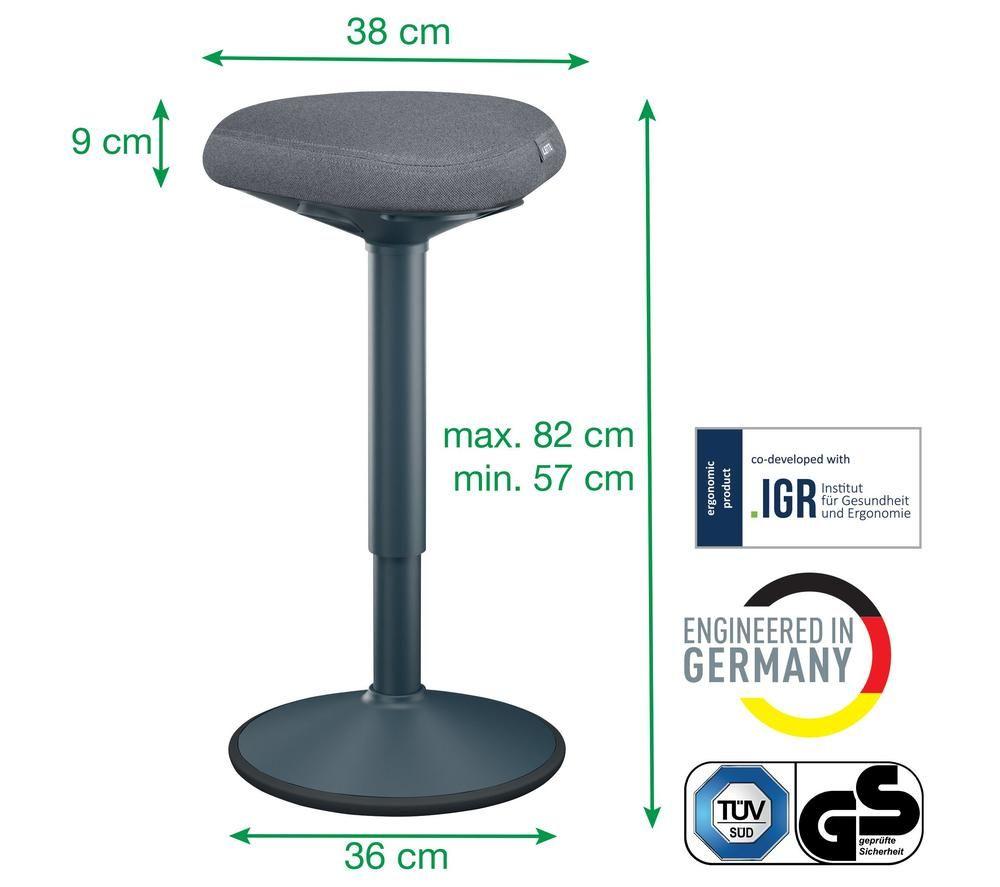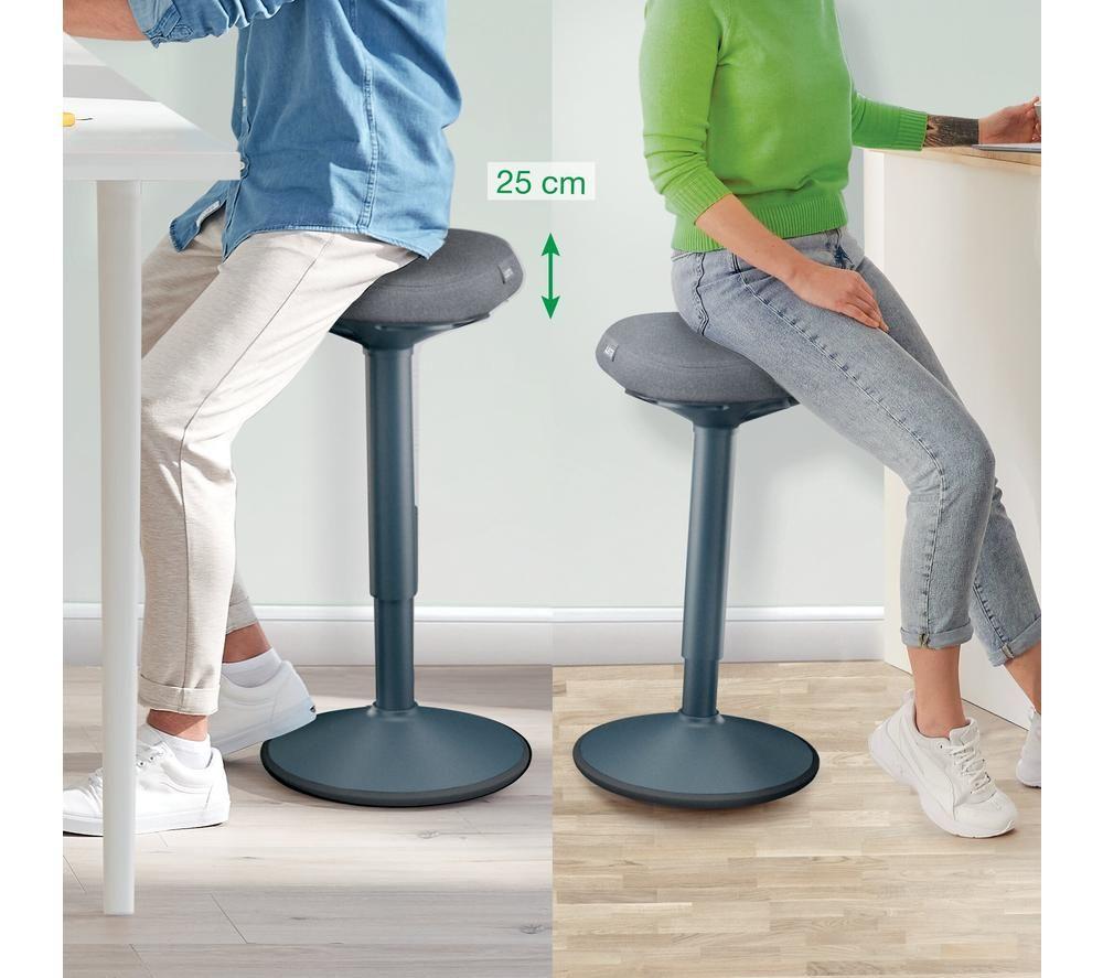 - This Leitz standing stool is ergonomically designed, so you can get your posture in tip top shape while you're sitting- Adjust the height to suit your workspace by simply pressing the release button- You can swivel and rock without losing balance – it has a sturdy and non-slip round base- Need an extra seat at the dining table? This lightweight stool can easily be moved from room to room