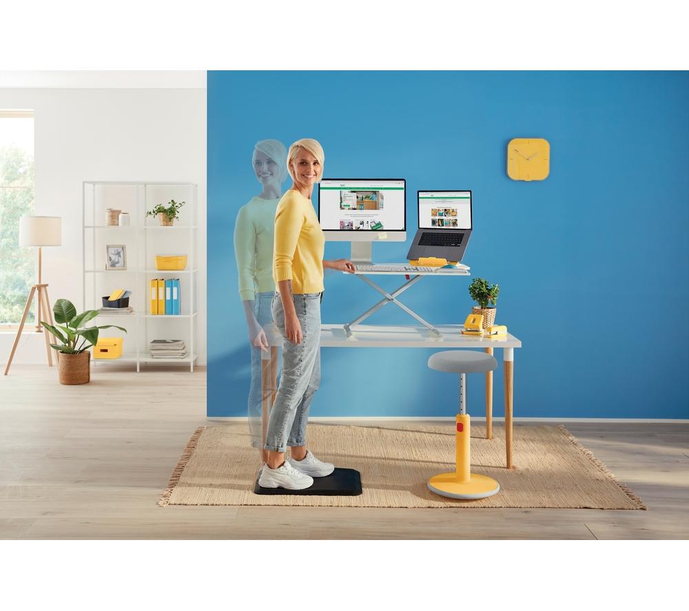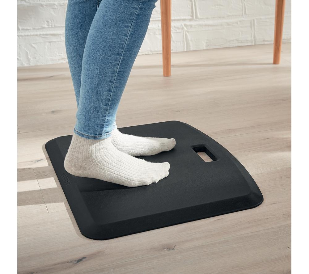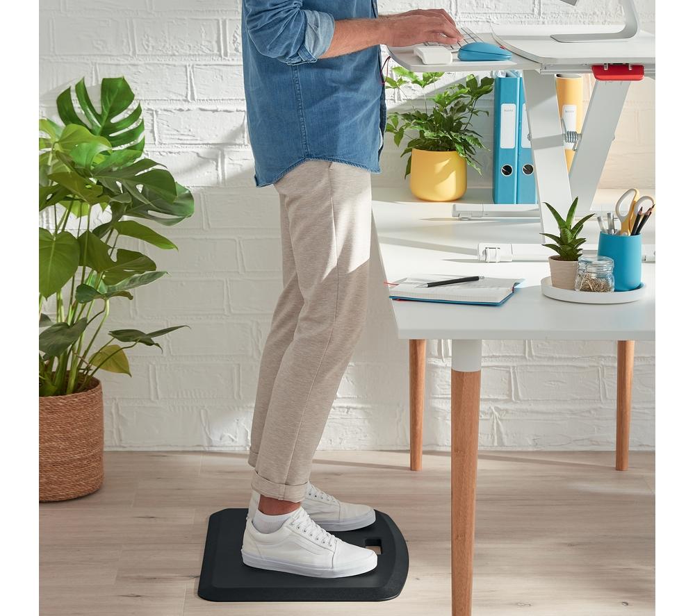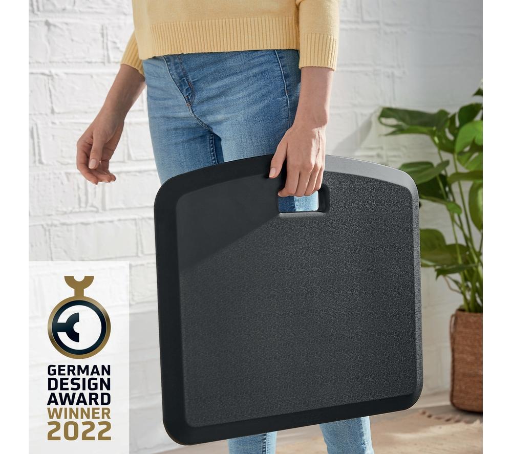 Good to know - Stay comfy at your standing desk with this floor mat – it supports your feet, and can reduce tiredness from standing up all day- It's made from strong, soft foam, so it won't lose its shape, even if you use it daily- You can easily pick it up and move it with the carry handle - Cleaning is easy – just wipe it with a wet cloth and you're good to go