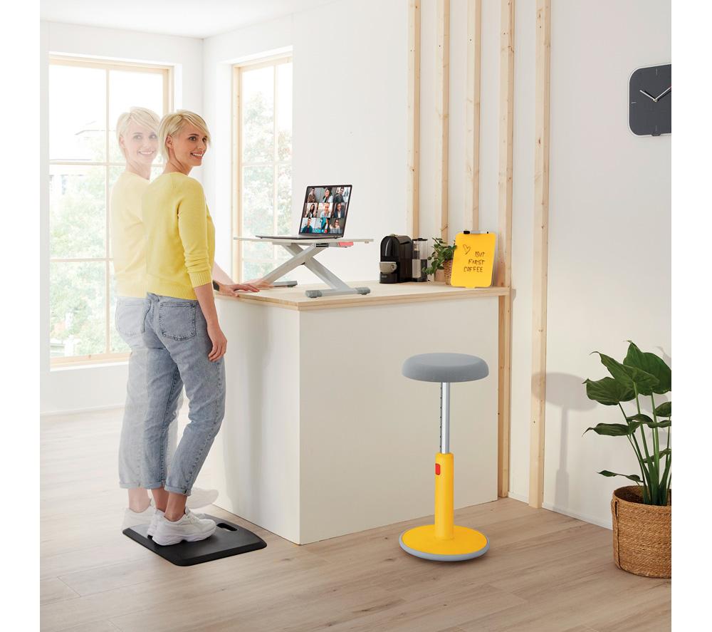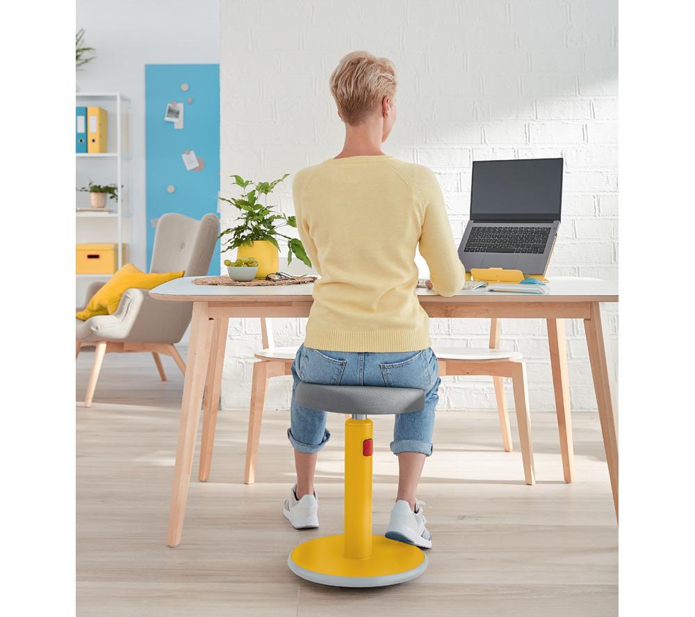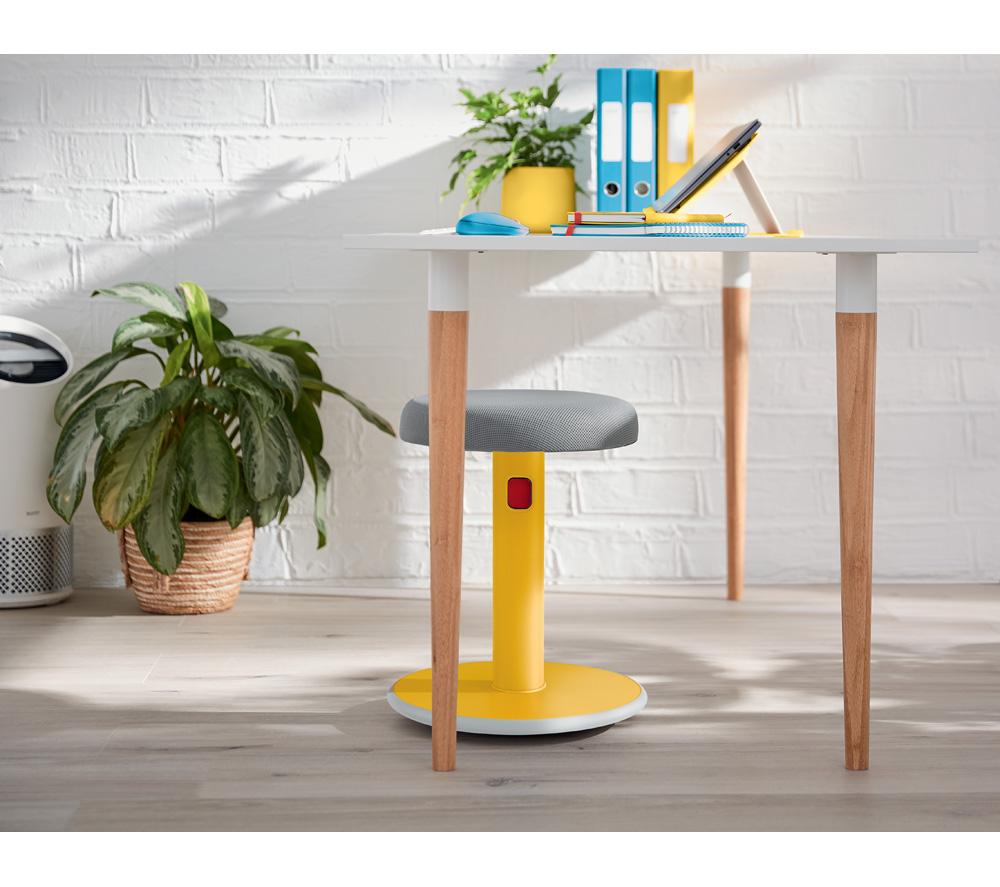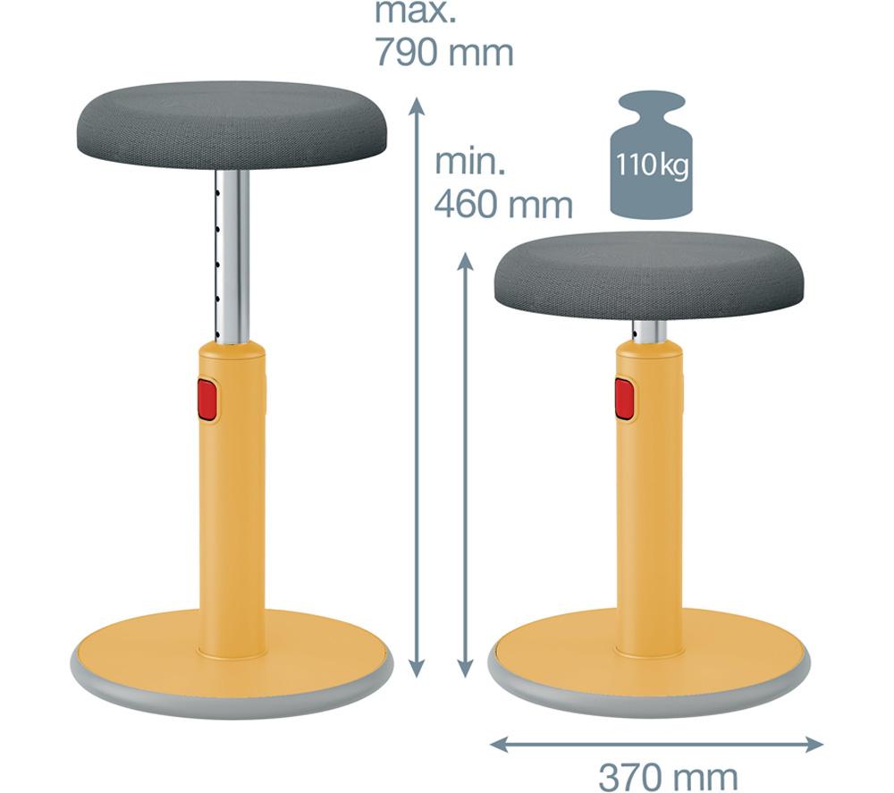 Good to know - This handy stool is ergonomically designed so you can get your posture in tip top shape whether you're sitting or standing - Adjust the height to suit your workspace by simply pressing the red release button - The sturdy rounded base lets you swivel and rock back and forth without losing your balance, so your body won't go numb from sitting still for too long - It has a non-slip base that'll keep both you and your floor safe from bumps and scratches - Need an extra seat at the dining table? This lightweight stool can easily be moved from room to room