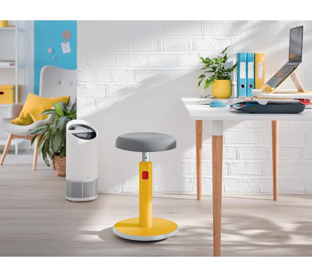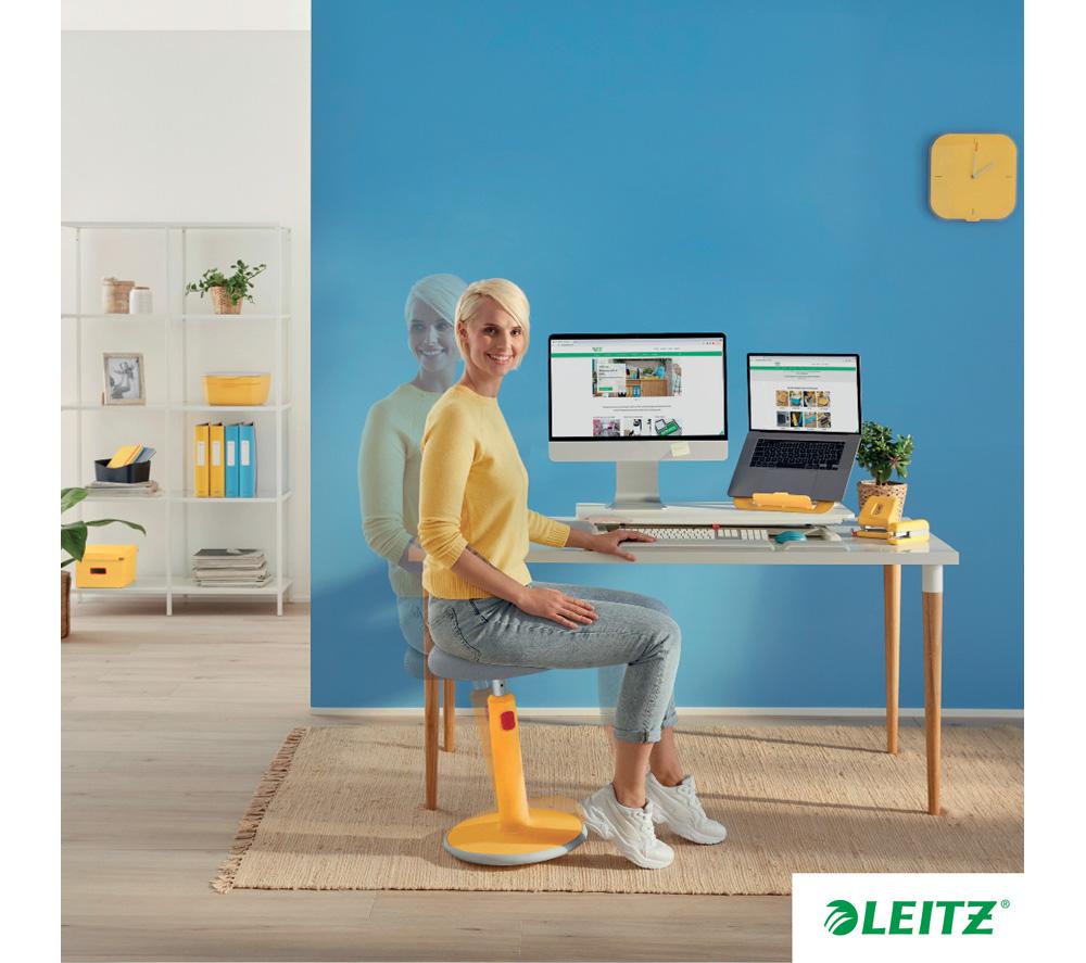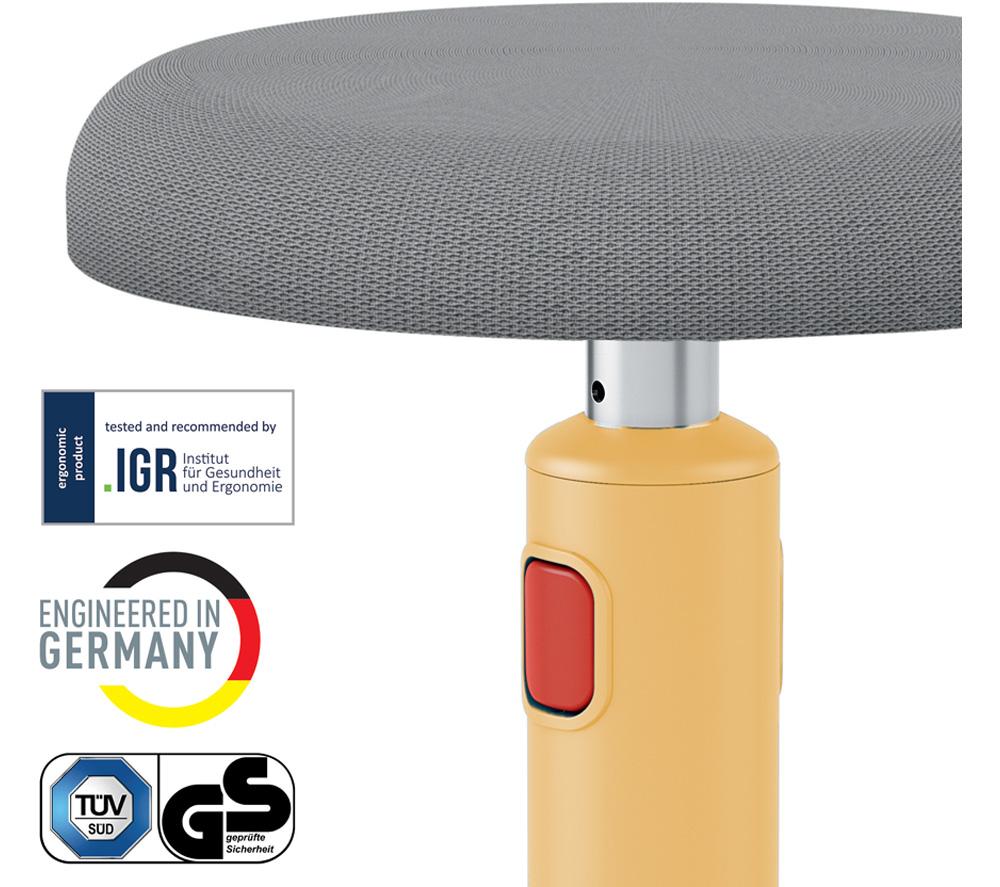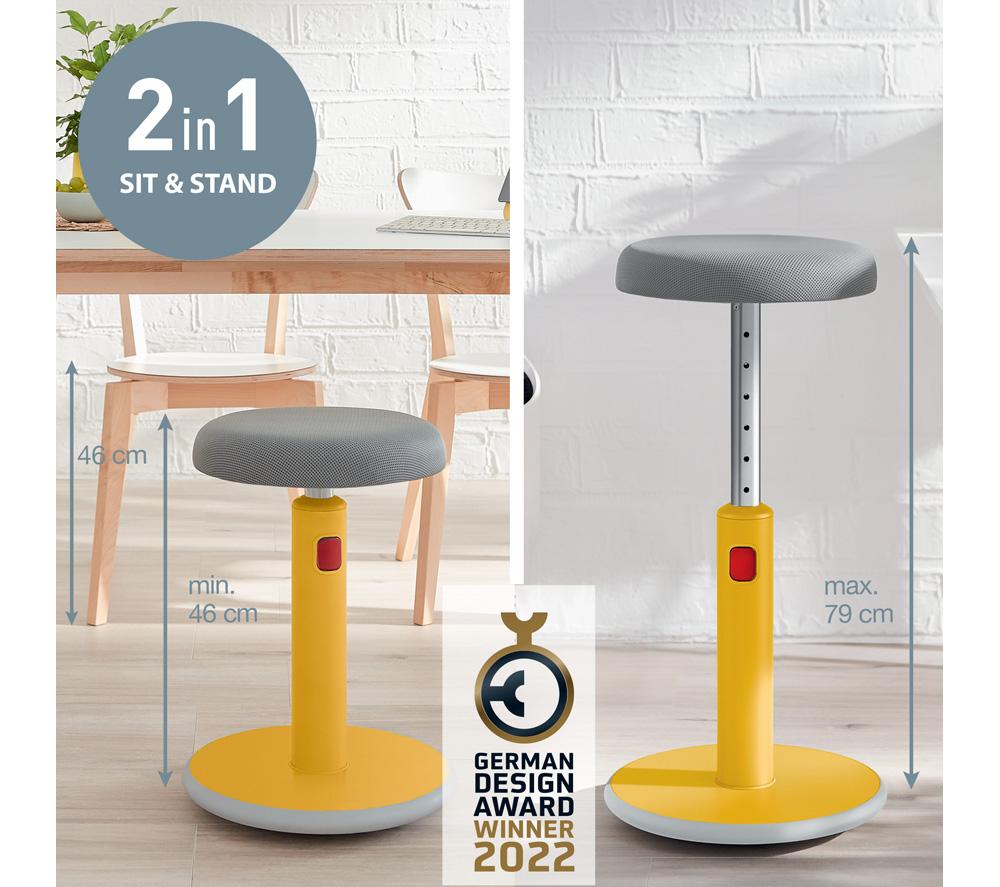 Good to know - This handy stool is ergonomically designed so you can get your posture in tip top shape whether you're sitting or standing - Adjust the height to suit your workspace by simply pressing the red release button - The sturdy rounded base lets you swivel and rock back and forth without losing your balance, so your body won't go numb from sitting still for too long - It has a non-slip base that'll keep both you and your floor safe from bumps and scratches - Need an extra seat at the dining table? This lightweight stool can easily be moved from room to room
