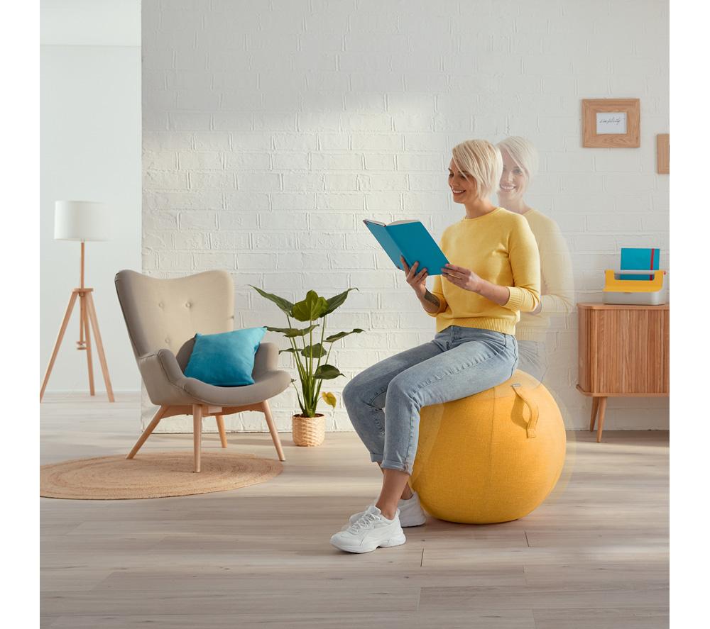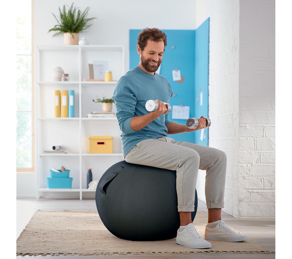 Good to know- Use it as a desk chair to keep you active while you work, or for various workouts to improve your posture- Its removable cover is hand-washable, helping you to keep the sitting ball clean and hygienic- The strong carry handle makes it easy to move from room to room - Inflating the ball is quick and easy with the supplied hand pump