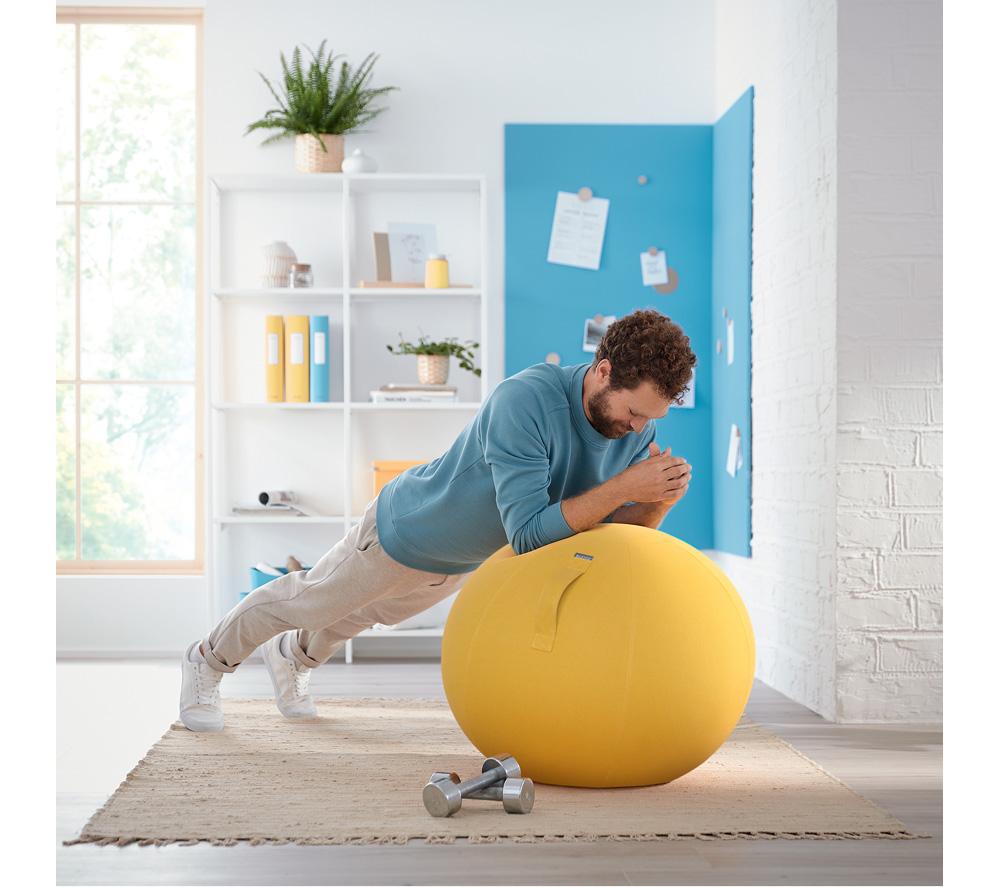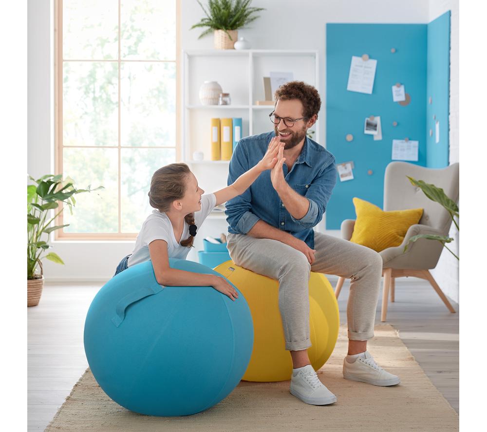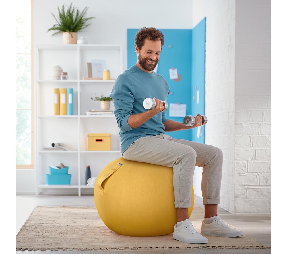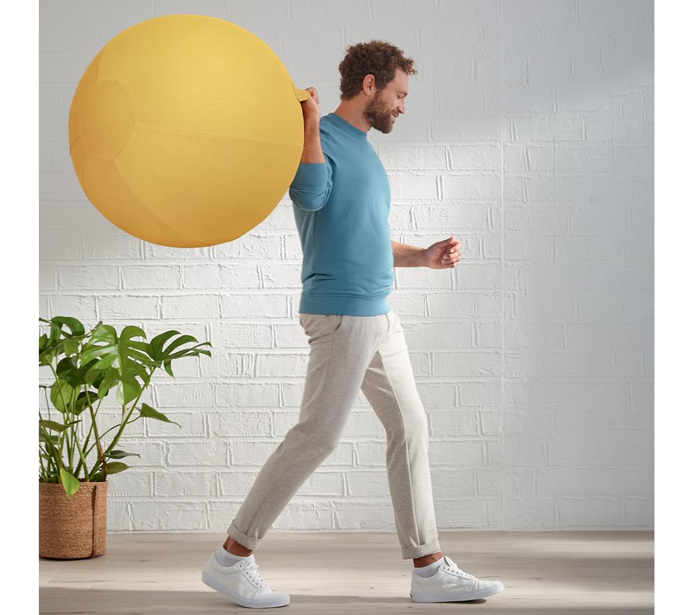 Good to know- Use it as a desk chair to keep you active while you work, or for various workouts to improve your posture- Its removable cover is hand-washable, helping you to keep the sitting ball clean and hygienic- The strong carry handle makes it easy to move from room to room - Inflating the ball is quick and easy with the supplied hand pump