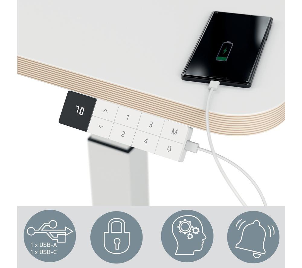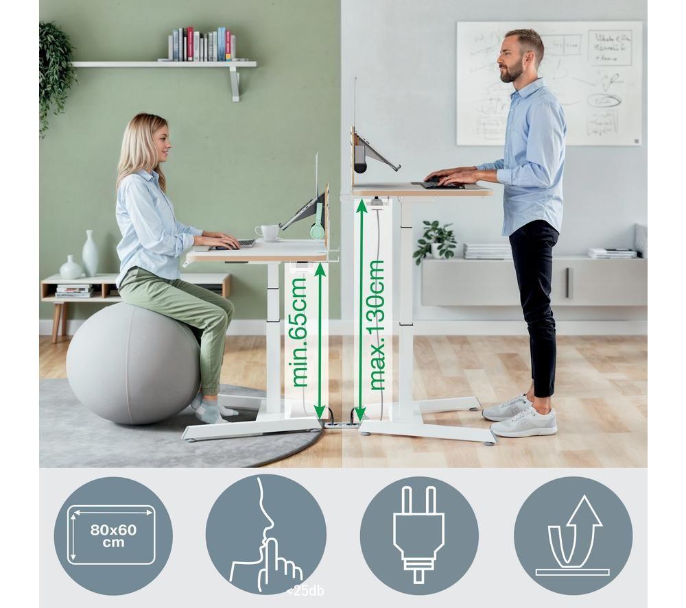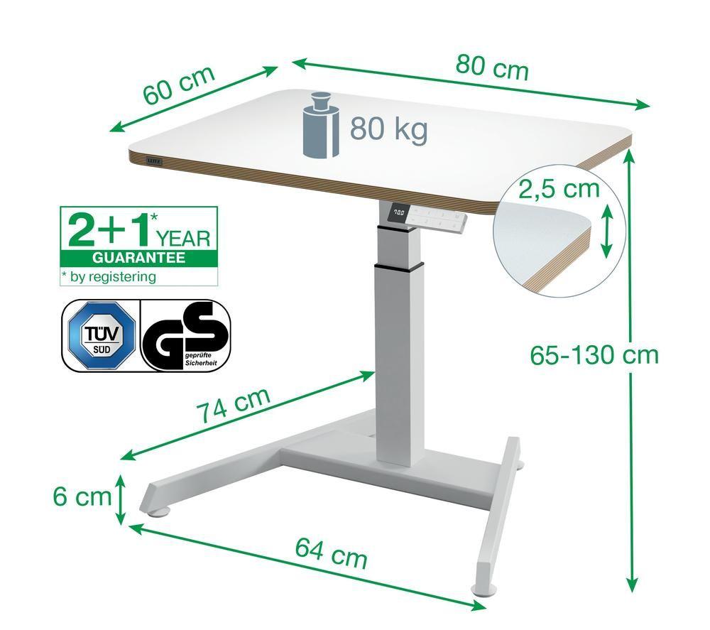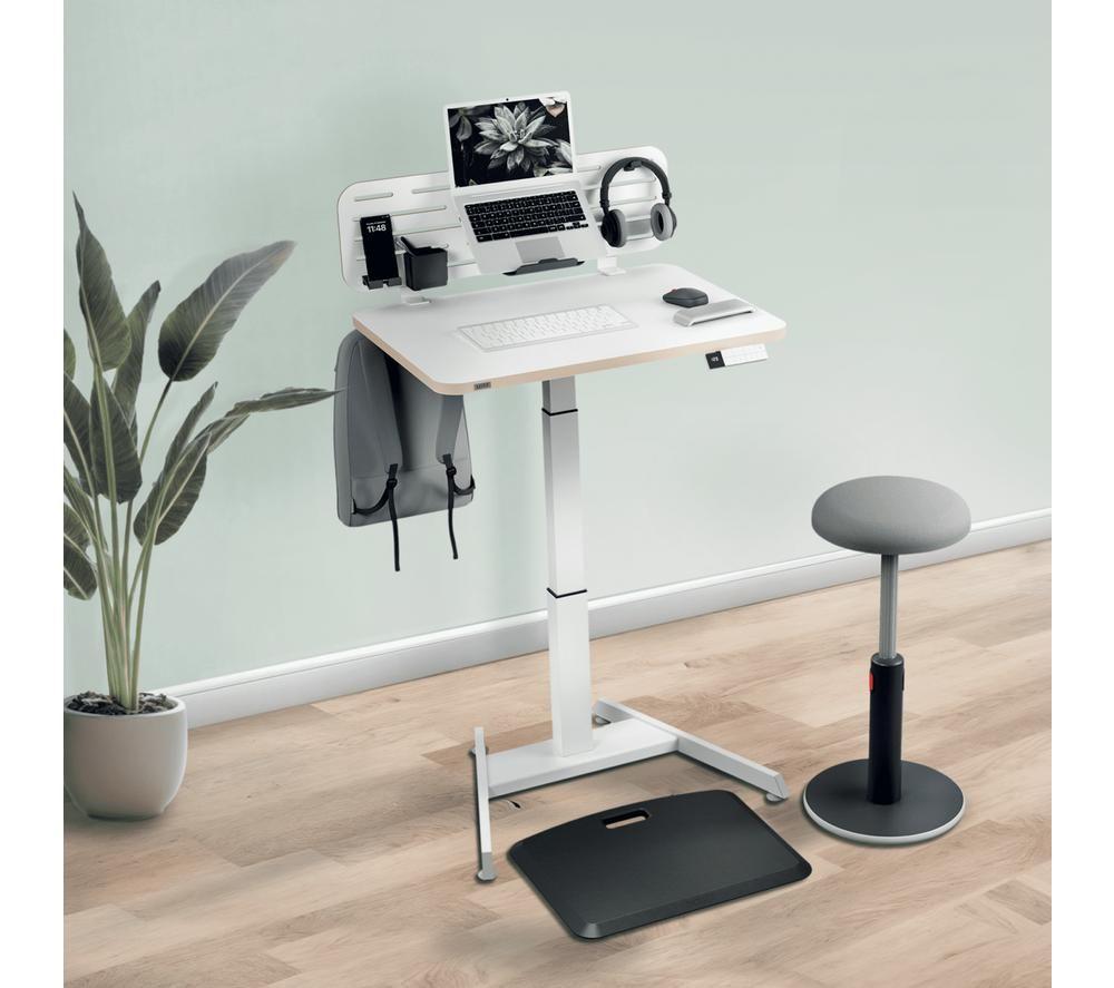 - Switch between sitting and standing positions by adjusting the height of this Leitz desk - Keep your workstation organised – its charging port means you won't have messy wires on your desk - Its 80 x 60 cm desktop area is perfect for fitting your laptop, mouse, keyboard and other accessories - Moving it from one room to another is no big deal thanks to its 4 castor wheels