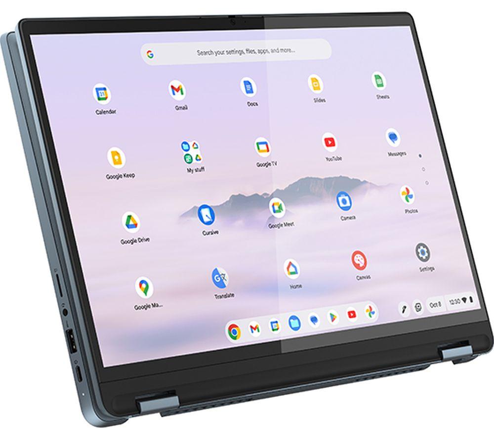The IdeaPad Flex 5 is as flexible as your day. Its 360-degree hinge lets you write an essay in laptop mode, then flip it to tent mode to watch movies once you've hit 'submit'. The Full HD+ IPS touchscreen is a bit taller than a standard display, giving you a bigger view when you're working between multiple windows. And it's all powered by a 13th gen Intel® Core™ i3 processor, so you can run all your daily tasks without being slowed down.Good to know- The battery lasts for up to 10 hours, so you've got enough juice for a day of work and a movie on the train home too- You'll look sharp when chatting to friends and colleagues on the Full HD webcam- With ChromeOS you get a smooth and streamlined experience and access to your favourite apps- There's a USB-A and two USB-C ports – hook up a monitor, charge your phone and still have room for dongles- The webcam privacy shutter lets you decide when you want to be seen on camera- ChromeOS is stable and efficient so 8 GB of RAM is plenty for all your everyday needs___________________________________________________________________________Intel, the Intel logo, Celeron, Intel Atom, Intel Core, Intel. Experience What's Inside, Intel Inside, the Intel Inside logo, Intel Unite, Iris, Pentium, Thunderbolt, the Thunderbolt logo, and Ultrabook are trademarks of Intel Corporation in the U.S. and/or other countries.