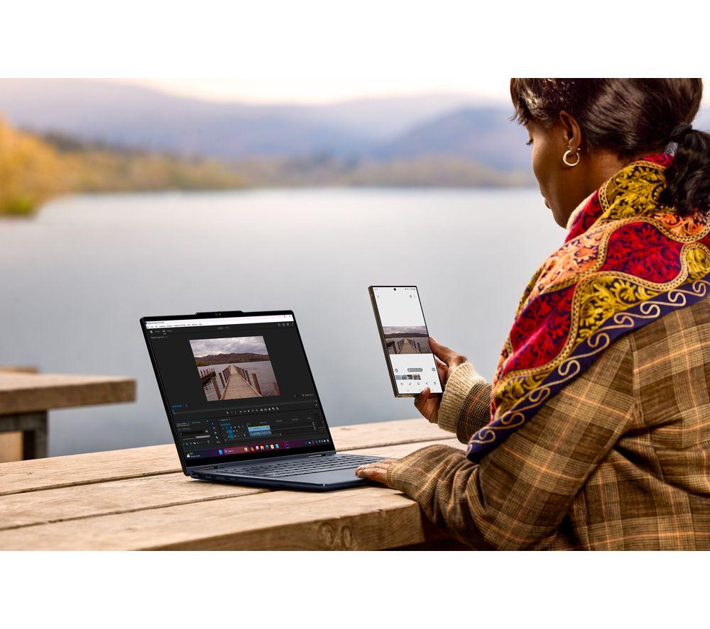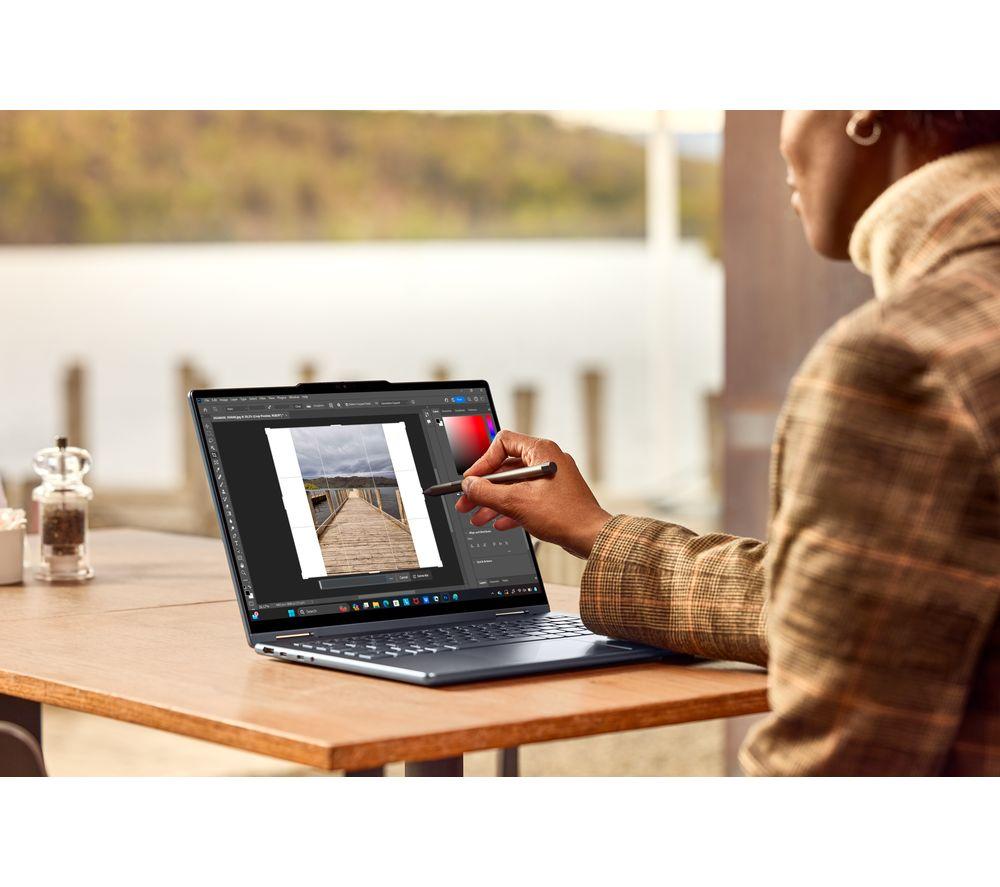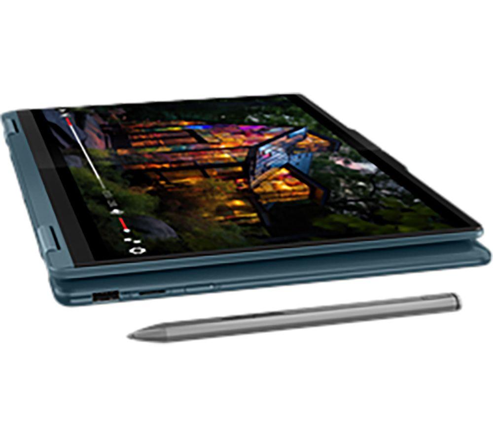 The Lenovo Yoga 7's 2 in 1 design lets you flip from work to play in a blink of an eye. For getting stuff done, the new Intel® Core™ Ultra 7 processor is a real powerhouse – filled with 16 cores and supercharged by AI. And because it's supported by the integrated Intel® Arc™ Graphics, there's nothing stopping you from creative work or even gaming. The Full HD+ OLED screen is super crisp and detailed with extra-punchy colours. Pair that with Dolby Vision and Dolby Atmos and all your shows will look and sound properly cinematic. A well-earned treat after a productive day. Good to know - It comes with the Lenovo Digital Pen, so you can sketch, sign and scribble with precision - With 100% DCI-P3 and DisplayHDR 500 you get a wide and accurate colour gamut - perfect for creative work - For secure and speedy sign-ins, you've got Windows Hello facial recognition - You'll look sharp when chatting to friends and colleagues on the Full HD webcam - The webcam privacy shutter lets you decide when you want to be seen on camera - 16 GB of DDR5 RAM can make light work of heavy multi-tasking - You've got loads of room for important files and projects 512 GB of SSD storage - There's two Thunderbolt 4 ports and HDMI 2.1 to handle displays and accessories - Even with all that power, the Yoga 7 still weighs under 1.5 kg Why we love it "You'll get a whopping 12.5 hours of battery life off just the one charge. So, you could easily settle in for a movie marathon, watch an entire trilogy, and still have some juice leftover." - Will, Product Copywriter __________________________________________________________________________ Intel, the Intel logo, Celeron, Intel Atom, Intel Core, Intel. Experience What's Inside, Intel Inside, the Intel Inside logo, Intel Unite, Iris, Pentium, Thunderbolt, the Thunderbolt logo, and Ultrabook are trademarks of Intel Corporation in the U.S. and/or other countries.
