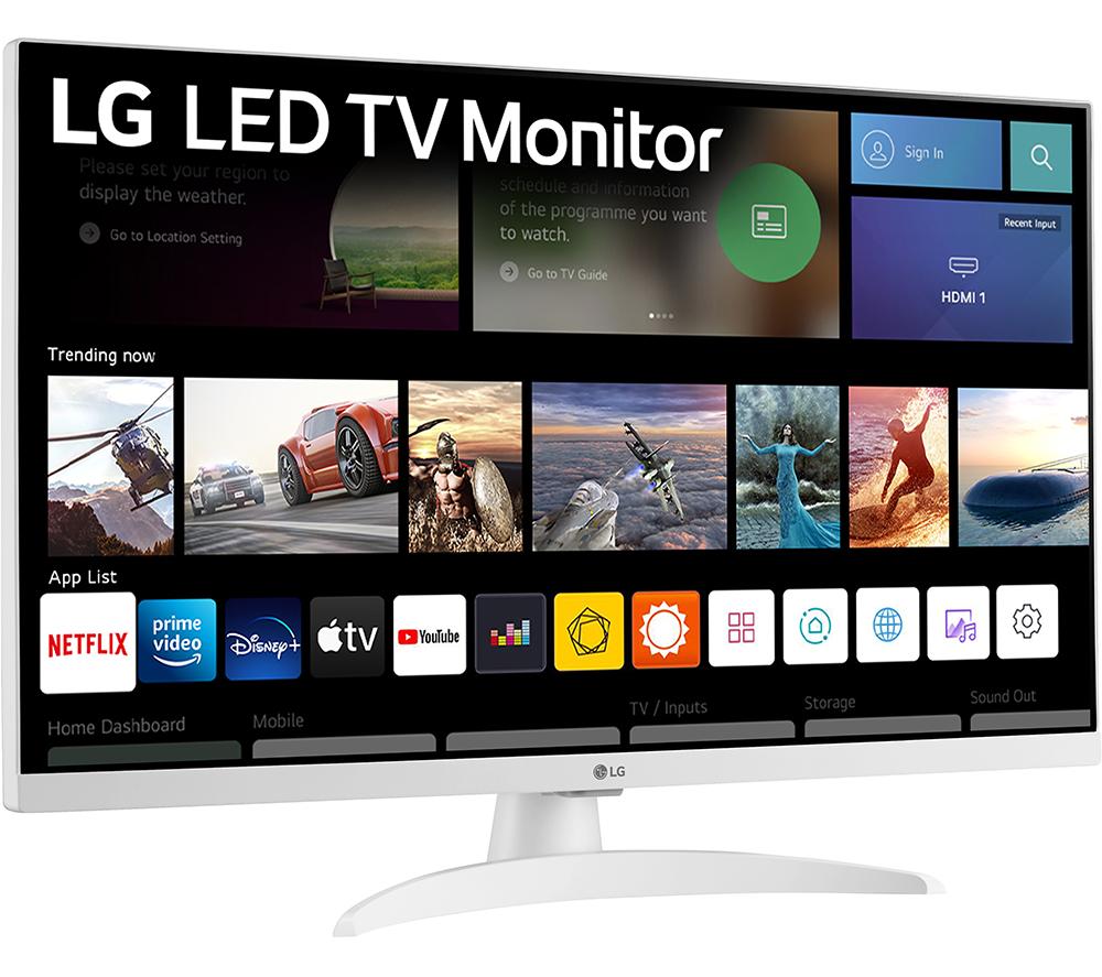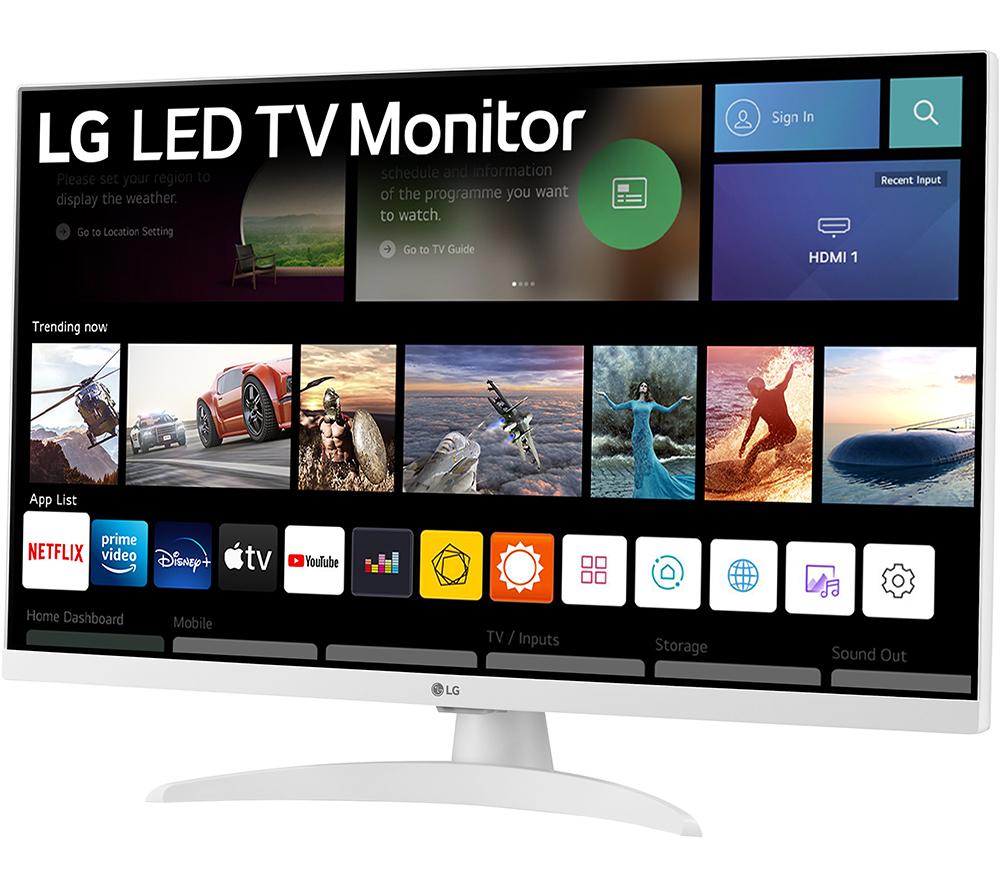 Flip between work and play with this LG 27" TV Monitor. It won't take up much space, so it's ideal for your home office or uni dorm. You can switch between using it as a monitor for coursework and streaming must-see shows from the likes of Netflix and Disney+ via LG's webOS smart platform. Its Full HD resolution gives you sharp detail and vibrant colours so you can enjoy your favourite films to the fullest.Good to know- It has a wide viewing angle so you won't need to bunch together to see the screen- Share your Android phone screen with Miracast or Apple AirPlay- Built-in stereo speakers mean there's less clutter on your desk- Catch-up on shows you've missed straight from the TV guide with Freeview Play- Works with LG's Magic Remote (sold separately) for motion and voice control_______________________________________________________________________Please note: Some apps & services (including tuner) are only available in the UK. Apps & services may be removed or no longer supported by third party content providers at any time. Some apps & services may not be available at launch and may require a firmware update before becoming available. Some services require an account and/or subscription fee.
