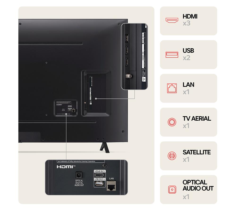 You'll love how good everything looks on the LG NANO81 TV. Nanocell technology makes colours pop – and they're not just vibrant, they're true-to-life. All delivered in sharp 4K Ultra HD resolution. The a5 AI processor is the brain of the TV. It's hard at work in the background, intelligently boosting the picture and sound of everything you watch. Plus, you'll always get just the right picture with AI Brightness Control – it uses the TV's ambient sensor to adapt to the light in the room. Discover the show's everyone's talking about on webOS, LG's smart platform. It's got all your favourite apps, including Netflix, Disney+, and Prime Video.Good to know- Filmmaker Mode turns off any picture processing that can make movies look unnatural, so it's closer to cinema-quality- When you watch HDR content, you'll see the difference with improved brightness and contrast- AI Sound Pro transforms 2-channel audio into virtual 9.1.2 surround sound for that cinema experience- Game Optimiser fine tunes your settings, so your games look and sound their best and run smoothly________________________________Please note: Some apps & services (including tuner) are only available in the UK. Apps & services may be removed or no longer supported by third party content providers at any time. Some apps & services may not be available at launch and may require a firmware update before becoming available. Some services require an account and/or subscription fee.