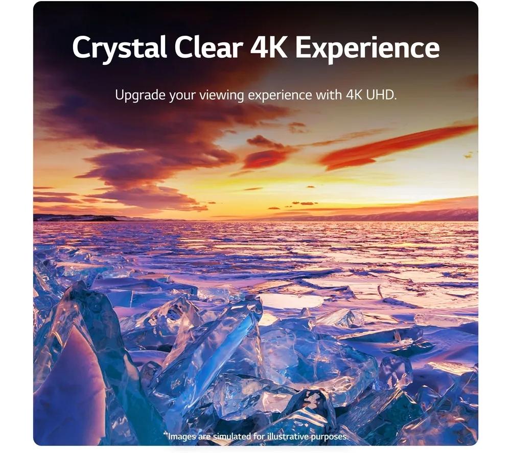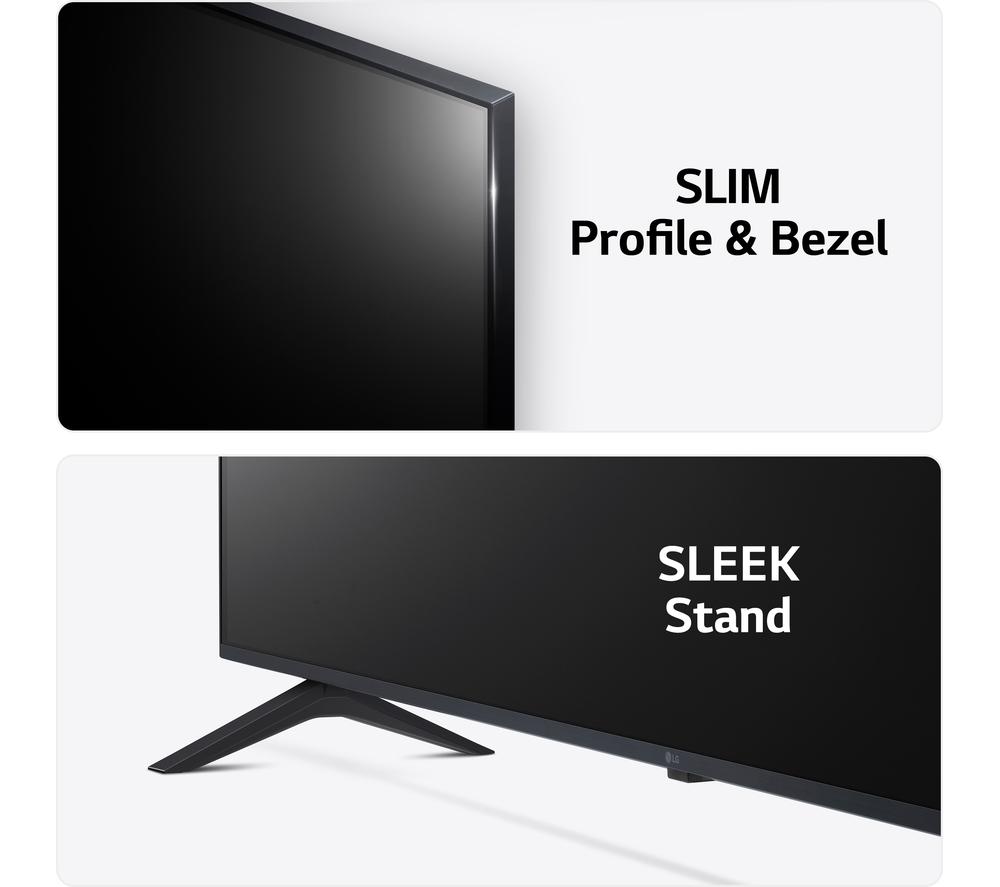 This LG UR78's 4K Ultra HD resolution means your favourite blockbusters look sharp and vibrant with incredible detail. Its High Dynamic Range (HDR) means more accurate colours, improved brightness levels and a deeper contrast. Those movie monsters just got a lot more menacing. With AI Sound, you'll feel the action all around you. It transforms 2-channel audio into virtual 5.1 surround sound for that movie theatre experience, only without the never-ending trailers. And Filmmaker Mode turns off any picture processing that can make movies look unnatural, so you can enjoy them the way the director intended.Good to know- Game Optimiser fine tunes your settings, so your games look and sound their best and run smoothly – your enemies don't stand a chance- Its modern, slim design will instantly become the focal point of your room and looks great on the wall or a TV cabinet- AI Acoustic Tuning uses the mic on your remote to tweak the TV's audio settings based on the size and shape of your room- Access all your favourite apps like Netflix, Prime Video, Disney+ and loads more via LG's webOS smart platform________________________________Please note: Some apps & services (including tuner) are only available in the UK. Apps & services may be removed or no longer supported by third party content providers at any time. Some apps & services may not be available at launch and may require a firmware update before becoming available. Some services require an account and/or subscription fee.