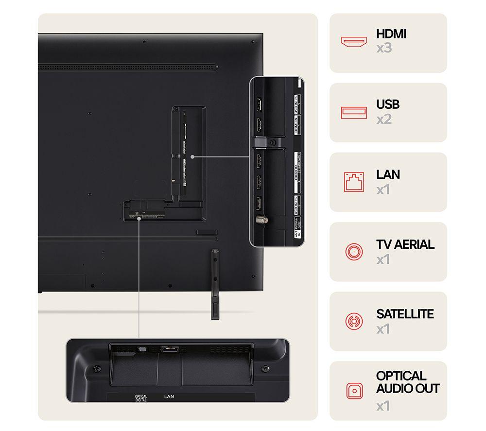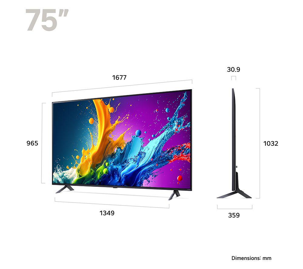 The grass really is greener with the LG QNED80 TV. Quantum Dot Nanocell technology makes your entertainment pop with 100% colour volume. It's not just vibrant, it's true-to-life with a full spectrum of tones that LCD TVs didn't quite nail before. The a5 AI processor is the brain of the TV. It's hard at work in the background, intelligently boosting the picture and sound of everything you watch. Plus, you'll always get just the right picture with AI Brightness Control – it uses theTV's ambient sensor to adapt to the light in the room. Discover the show's everyone's talking about on webOS, LG's smart platform. It's got all your favourite apps, such as Netflix, Disney+, and Prime Video.Good to know- Filmmaker Mode turns off any picture processing that can make movies look unnatural, so it's closer to cinema-quality- When you watch HDR content, you'll see the difference with improved brightness and contrast- AI Sound Pro transforms 2-channel audio into virtual 9.1.2 surround sound for that cinema experience- The super-slim design looks good in any space whether you're using the stand or wall mounting (mount sold separately)- Game Optimiser fine tunes your settings, so your games look and sound their best and run smoothly________________________________Please note: Some apps & services (including tuner) are only available in the UK. Apps & services may be removed or no longer supported by third party content providers at any time. Some apps & services may not be available at launch and may require a firmware update before becoming available. Some services require an account and/or subscription fee.
