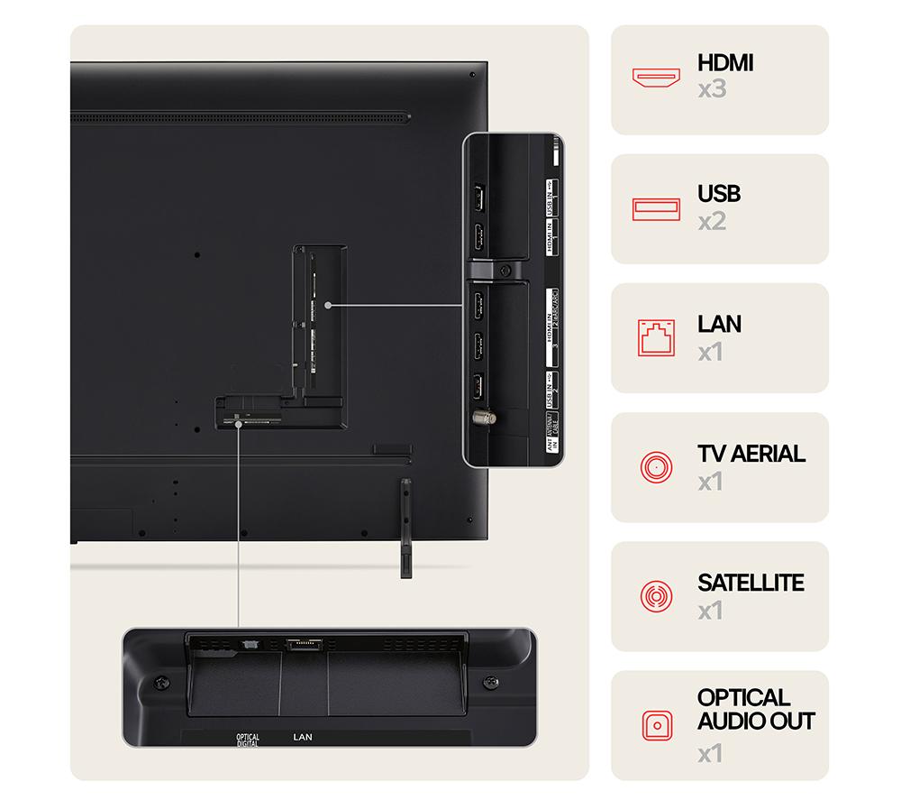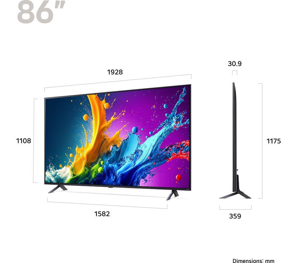 The grass really is greener with the LG QNED80 TV. Quantum Dot Nanocell technology makes your entertainment pop with 100% colour volume. It's not just vibrant, it's true-to-life with a full spectrum of tones that LCD TVs didn't quite nail before. The a5 AI processor is the brain of the TV. It's hard at work in the background, intelligently boosting the picture and sound of everything you watch. Plus, you'll always get just the right picture with AI Brightness Control – it uses theTV's ambient sensor to adapt to the light in the room. Discover the show's everyone's talking about on webOS, LG's smart platform. It's got all your favourite apps, such as Netflix, Disney+, and Prime Video.Good to know- Filmmaker Mode turns off any picture processing that can make movies look unnatural, so it's closer to cinema-quality- When you watch HDR content, you'll see the difference with improved brightness and contrast- AI Sound Pro transforms 2-channel audio into virtual 9.1.2 surround sound for that cinema experience- The super-slim design looks good in any space whether you're using the stand or wall mounting (mount sold separately)- Game Optimiser fine tunes your settings, so your games look and sound their best and run smoothly________________________________Please note: Some apps & services (including tuner) are only available in the UK. Apps & services may be removed or no longer supported by third party content providers at any time. Some apps & services may not be available at launch and may require a firmware update before becoming available. Some services require an account and/or subscription fee.