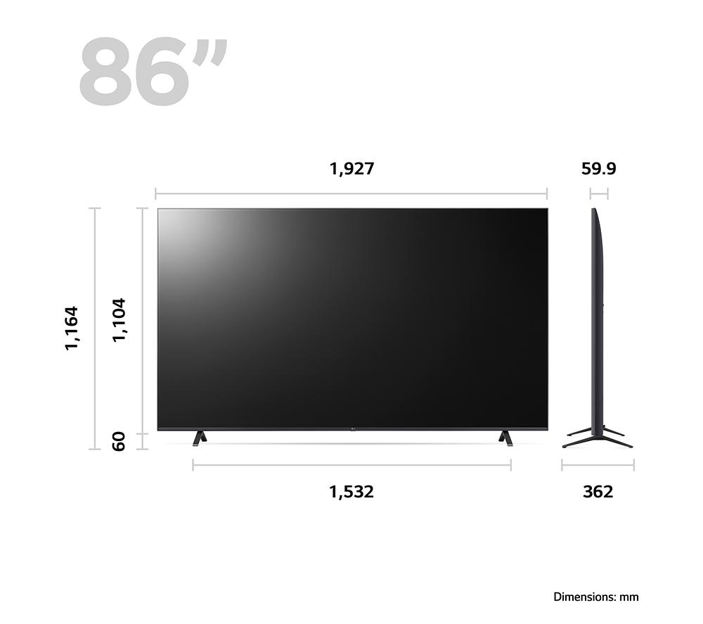 This LG UR78's 4K Ultra HD resolution means your favourite blockbusters look sharp and vibrant with incredible detail. Its High Dynamic Range (HDR) means more accurate colours, improved brightness levels and a deeper contrast. Those movie monsters just got a lot more menacing. With AI Sound, you'll feel the action all around you. It transforms 2-channel audio into virtual 5.1 surround sound for that movie theatre experience, only without the never-ending trailers. And Filmmaker Mode turns off any picture processing that can make movies look unnatural, so you can enjoy them the way the director intended.Good to know- Game Optimiser fine tunes your settings, so your games look and sound their best and run smoothly – your enemies don't stand a chance- Its modern, slim design will instantly become the focal point of your room and looks great on the wall or a TV cabinet- AI Acoustic Tuning uses the mic on your remote to tweak the TV's audio settings based on the size and shape of your room- Access all your favourite apps like Netflix, Prime Video, Disney+ and loads more via LG's webOS smart platform________________________________Please note: Some apps & services (including tuner) are only available in the UK. Apps & services may be removed or no longer supported by third party content providers at any time. Some apps & services may not be available at launch and may require a firmware update before becoming available. Some services require an account and/or subscription fee.