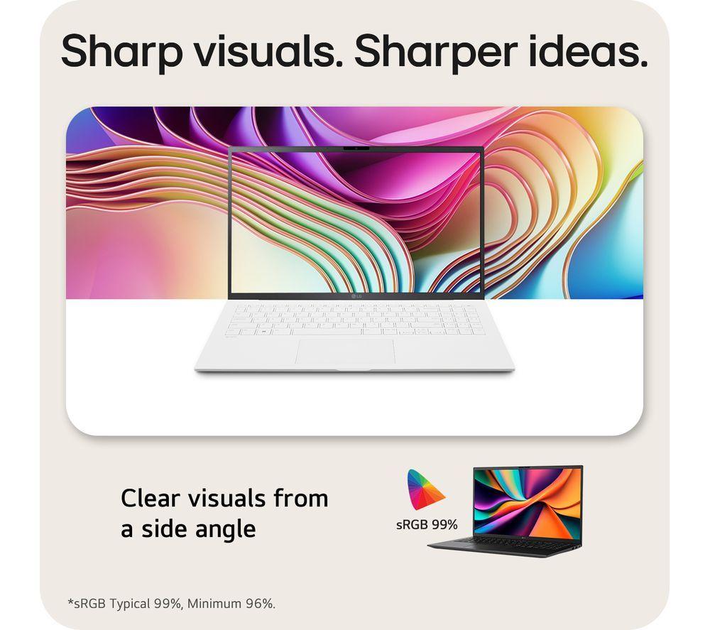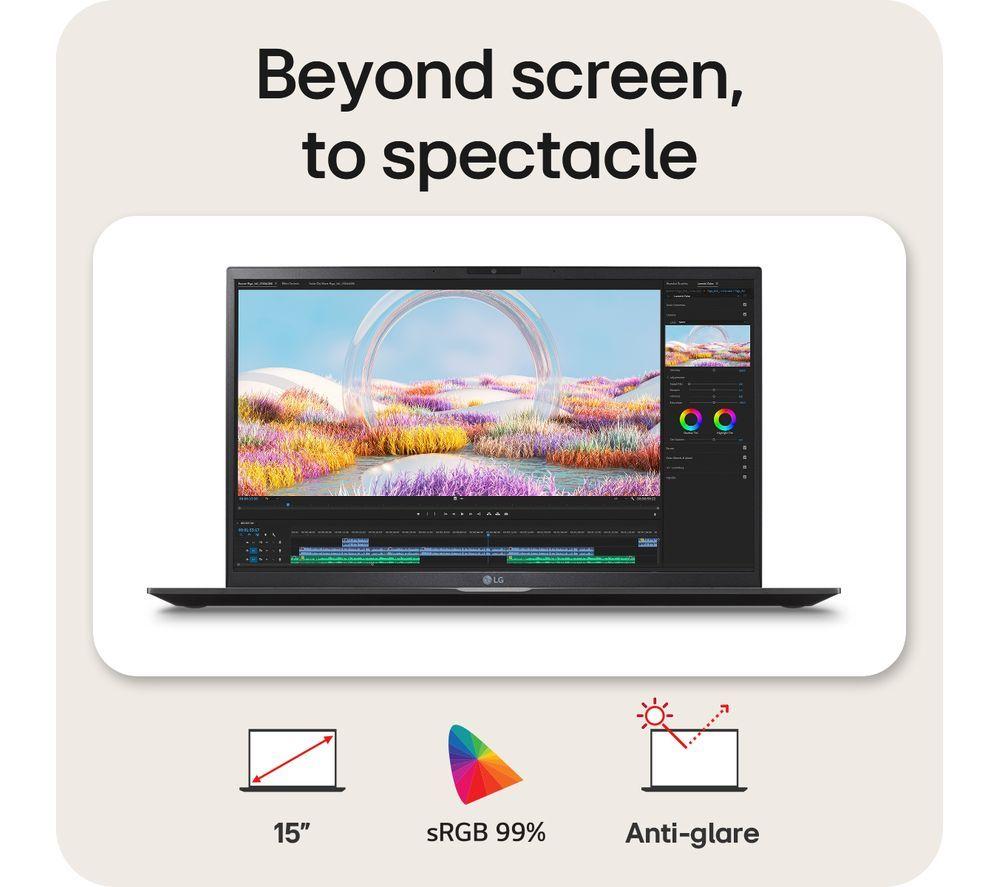 The LG gram 15 is a lightweight heavy hitter that can give any workflow a knockout blow. It's packing an Intel® Core™ Ultra 5 processor that won't flinch at heavy-duty tasks. It's supercharged by AI and the integrated Intel® Arc™ graphics give it an extra kick in creative apps and even games. You'll have all the screen space and resolution you need on the 15.6" Full HD screen. Even with that much power, it only weighs 1.29 kg - perfect for digital nomads. And it can take a punch, too. The gram went through military-grade durability testing and passed with flying colours. So you can be sure it can handle living in your backpack.Good to know- The battery lasts up to 23 hours, which is frankly astonishing and longer than any flight- What keeps the gram so light and durable is its magnesium body – it gives it a premium feel, too- Mega Cooling will keep your gram running smooth under heavy workloads- It comes with Dolby Atmos support, so you can get that 3D surround sound for total movie immersion- The Full HD webcam supports Windows Hello, so you can log in with just a smile- The 512 GB SSD drive is great if you want to store high-res pics and videos offline- Use the Thunderbolt 4 port to hook your gram up to high-res monitors or super-fast SSDs__________________________________________________________________________Intel, the Intel logo, Celeron, Intel Atom, Intel Core, Intel. Experience What's Inside, Intel Inside, the Intel Inside logo, Intel Unite, Iris, Pentium, Thunderbolt, the Thunderbolt logo, and Ultrabook are trademarks of Intel Corporation in the U.S. and/or other countries.