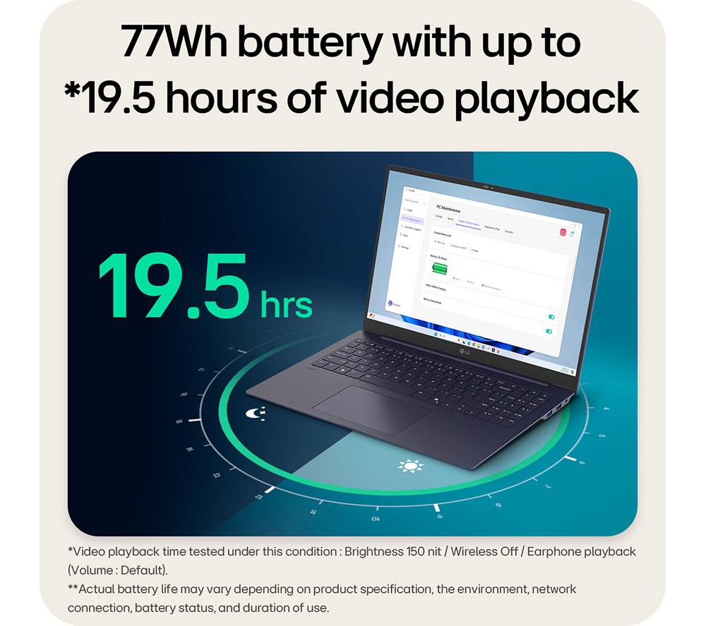 The LG gram Pro is a lightweight heavy hitter that can give any workflow a knockout blow. It's got an Intel® Core™ Ultra 7 processor that won't flinch at heavy-duty tasks. Supercharged by AI, this one gives you some impressive speed and high performance. While the integrated Intel® Arc™ graphics adds extra boost for creative apps and gaming. You'll have all the screen space and resolution you need on the 16" 2.8K screen. Even with that much power, it only weighs 1.12 kg – perfect for digital nomads. And it can take a punch, too. The gram went through military-grade durability testing and passed with flying colours. So you can be sure it can handle living in your backpack. Good to know - A Copilot+ PC brings the latest AI features so you can work and create faster than ever before- The Intel® Evo™ platform brings together premium technologies for an exceptional performance - It has a 22 hour battery life, so you won't need be needing a socket anytime soon - With 16 GB of DDR5 RAM, this one is ready to take on some serious multi-tasking- The variable refresh rate adjusts to your content between 48 and 120 Hz - Save all your high-res pics and videos offline – it has 1 TB of storage - It comes with Dolby Atmos support, so you can get that 3D surround sound for total movie immersion - The Full HD webcam supports Windows Hello, so you can log in with just a smile - Use the Thunderbolt 4 ports to hook your gram up to high-res monitors or super-fast SSDs __________________________________________________________________________ Intel, the Intel logo, Celeron, Intel Atom, Intel Core, Intel. Experience What's Inside, Intel Inside, the Intel Inside logo, Intel Unite, Iris, Pentium, Thunderbolt, the Thunderbolt logo, and Ultrabook are trademarks of Intel Corporation in the U.S. and/or other countries.