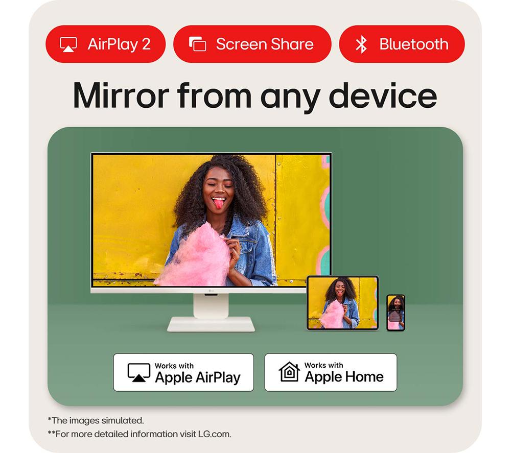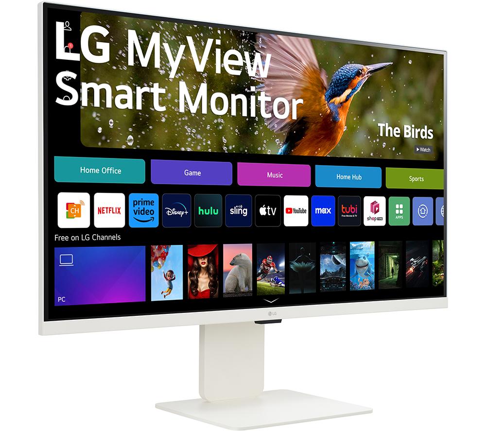Flip between work and play with this LG MyView 32" Smart Monitor. It won't take up much space, so it's ideal for working from home or your study nook. With a quick switch, you can go from spreadsheets to streaming must-see shows and movies on the webOS smart platform. It's got all your favourites, including Netflix, Disney+, and Apple TV. The 4K Ultra HD IPS display makes everything pop with true-to-life colours and super sharp contrast. And with support for HDR10, it's the perfect excuse to kick back and enjoy a movie.Good to know- It has a wide 178° viewing angle, so you won't need to bunch together to see the screen- The 250 nits display is lovely and bright – ideal for anytime of the day- With Home Office software built-in you can check your calendar or email without connecting to a PC- Share your phone screen with Miracast or Apple AirPlay2- Built-in stereo speakers means there's less clutter on your desk- Charge your laptop or phone - or hook up other devices - using the USB-C port_______________________________________________________________________Please note: - This model does not include a TV aerial socket or tuner.- Some apps & services (including tuner) are only available in the UK. Apps & services may be removed or no longer supported by third party content providers at any time. Some apps & services may not be available at launch and may require a firmware update before becoming available. Some services require an account and/or subscription fee.
