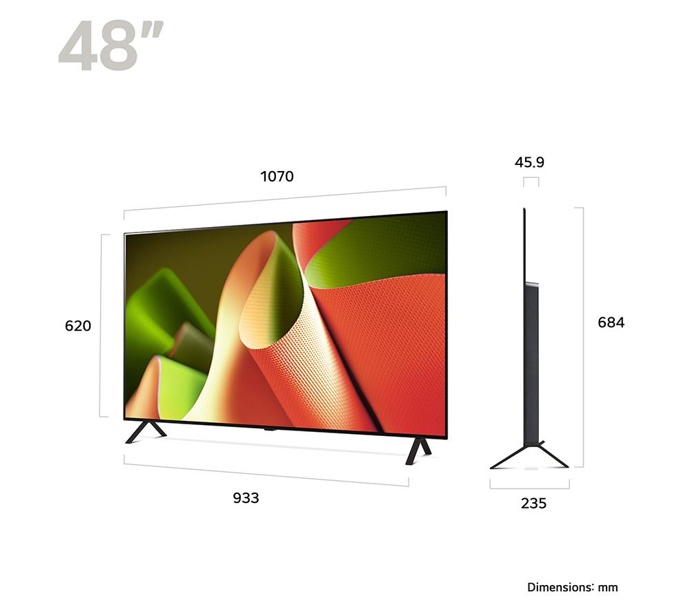 The OLED display on this LG B4 TV is pretty magical. It uses self-lit pixels for perfect blacks and brilliant highlights, so you'll see more details in every scene. And because there's no backlight, there's no annoying halos either. The a8 AI processor is the brain of the TV. It's hard at work in the background, intelligently boosting the picture and sound of everything you watch. Even older entertainment is given a new lease of life with AI Super Upscaling. Speaking of entertainment, you'll be spoilt for choice. There's something for the whole family on webOS, LG's smart platform which includes Netflix, Disney+ and a whole lot more.Good to know- Filmmaker Mode turns off any picture processing that can make movies look unnatural, so it's closer to cinema-quality- Sound flows all around you with Dolby Atmos, making you feel like you're at the heart of the action- Dolby Vision HDR brings more depth to every scene with incredible contrast and vivid colours- Get the most out of your next-gen console with support for 4K@120 Hz and more gaming tech than you can shake a controller at- OLED Motion makes fast paced sports and movies look smooth, so it's easy to keep up with the action- AI Sound Pro transforms 2-channel audio into virtual 9.1.2 surround sound for that movie theatre experience________________________________Please note: Some apps & services (including tuner) are only available in the UK. Apps & services may be removed or no longer supported by third party content providers at any time. Some apps & services may not be available at launch and may require a firmware update before becoming available. Some services require an account and/or subscription fee.