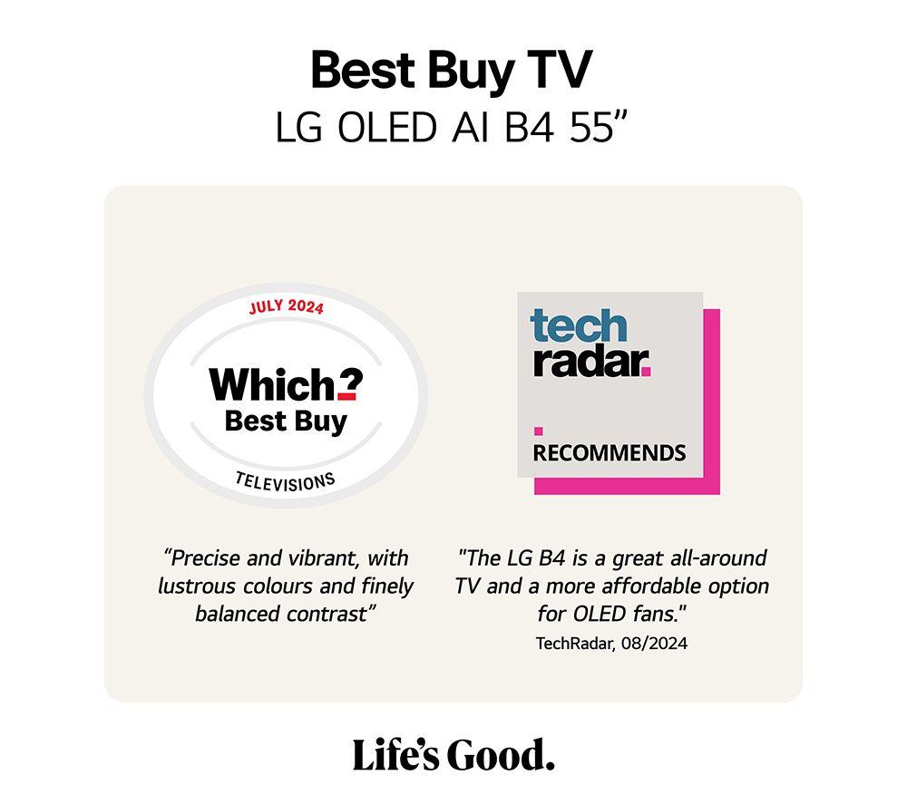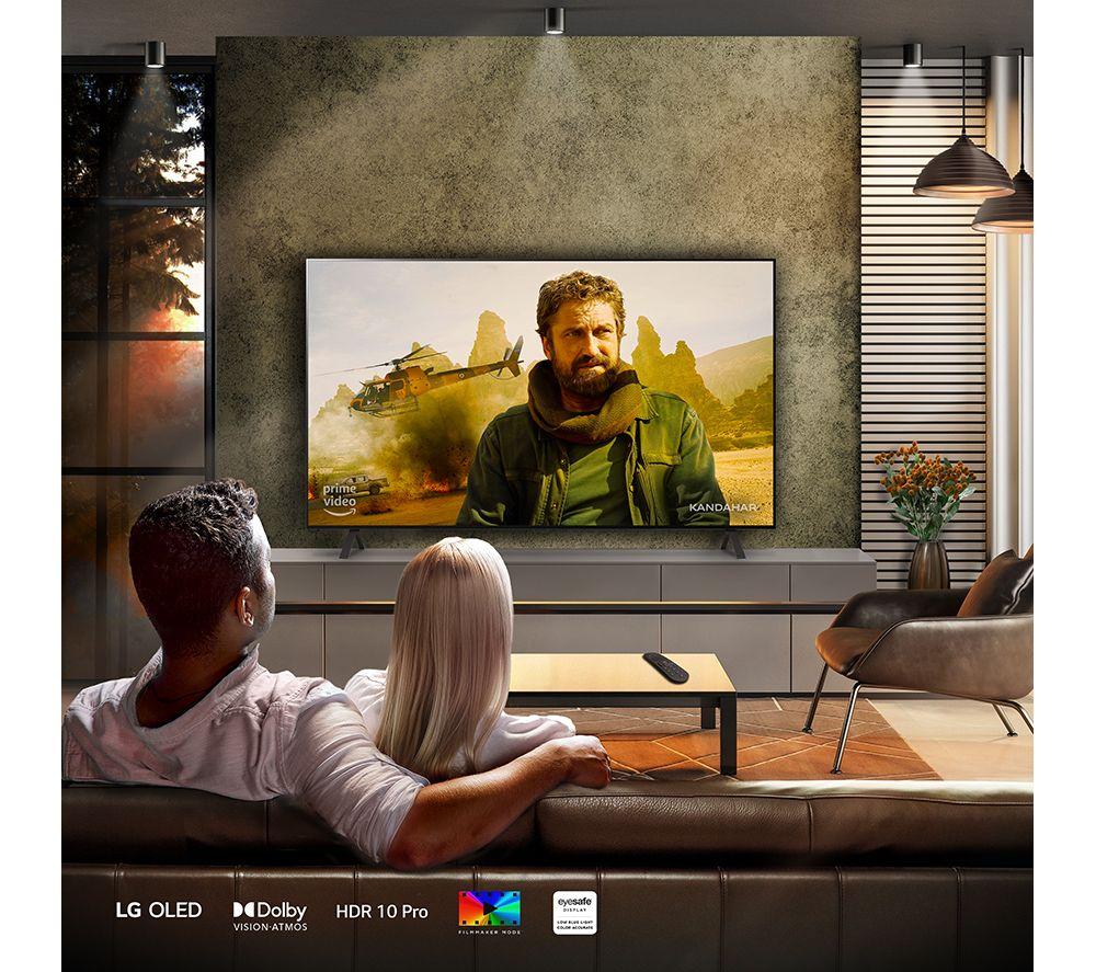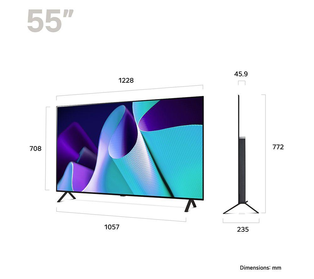 The OLED display on this LG B4 TV is pretty magical. It uses self-lit pixels for perfect blacks and brilliant highlights, so you'll see more details in every scene. And because there's no backlight, there's no annoying halos either. The a8 AI processor is the brain of the TV. It's hard at work in the background, intelligently boosting the picture and sound of everything you watch. Even older entertainment is given a new lease of life with AI Super Upscaling. Speaking of entertainment, you'll be spoilt for choice. There's something for the whole family on webOS, LG's smart platform which includes Netflix, Disney+ and a whole lot more.Good to know- Filmmaker Mode turns off any picture processing that can make movies look unnatural, so it's closer to cinema-quality- Sound flows all around you with Dolby Atmos, making you feel like you're at the heart of the action- Dolby Vision HDR brings more depth to every scene with incredible contrast and vivid colours- Get the most out of your next-gen console with support for 4K@120 Hz and more gaming tech than you can shake a controller at- OLED Motion makes fast paced sports and movies look smooth, so it's easy to keep up with the action- AI Sound Pro transforms 2-channel audio into virtual 9.1.2 surround sound for that movie theatre experience________________________________Please note: Some apps & services (including tuner) are only available in the UK. Apps & services may be removed or no longer supported by third party content providers at any time. Some apps & services may not be available at launch and may require a firmware update before becoming available. Some services require an account and/or subscription fee.