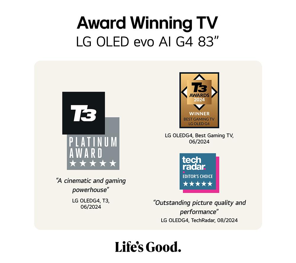 The LG G4 is designed to be hung on your wall like a piece of art. And what a stunning piece it is. It has an ultra slim profile and built-in wall mount that sits flush to the wall for a clean and tidy look. So, there's nothing to distract you from the self-lit OLED evo display. Because each pixel is individually lit, the contrast is perfectly balanced with 100% colour accuracy and sharp 4K detail. More brightness means a clearer picture. The Brightness Booster Max makes this TV up to 70% brighter than your average OLED, so you'll see more detail whether it's night or day. The a11 AI processor is the brain behind the beauty. It's LG's most advanced processor yet with AI Director Processing bringing colours closer to what the filmmaker intended. Speaking of entertainment, you'll be spoilt for choice. There's something for the whole family on webOS, LG's smart platform which includes Netflix, Disney+ and a whole lot more.Good to know- Older entertainment is given a new lease of life with AI Super Upscaling- You won't miss a whisper thanks to AI Voice Remastering for clearer dialogue- Filmmaker Mode turns off any picture processing that can make movies look unnatural, so you can enjoy them the way the director intended- Sound flows all around you with Dolby Atmos, making you feel like you're at the heart of the action- Dolby Vision HDR brings more depth to every scene with incredible contrast and vivid colours- Get the most out of your next-gen console with support for 4K@144 Hz and more gaming tech than you can shake a controller at- OLED Motion makes fast paced sports and movies look smooth, so it's easy to keep up with the action- AI Sound Pro transforms 2-channel audio into virtual 5.1 surround sound for that movie theatre experience________________________________Please note:- Some apps & services (including tuner) are only available in the UK. Apps & services may be removed or no longer supported by third party content providers at any time. Some apps & services may not be available at launch and may require a firmware update before becoming available. Some services require an account and/or subscription fee.- This TV does not include a stand, but does include a wall mount bracket.