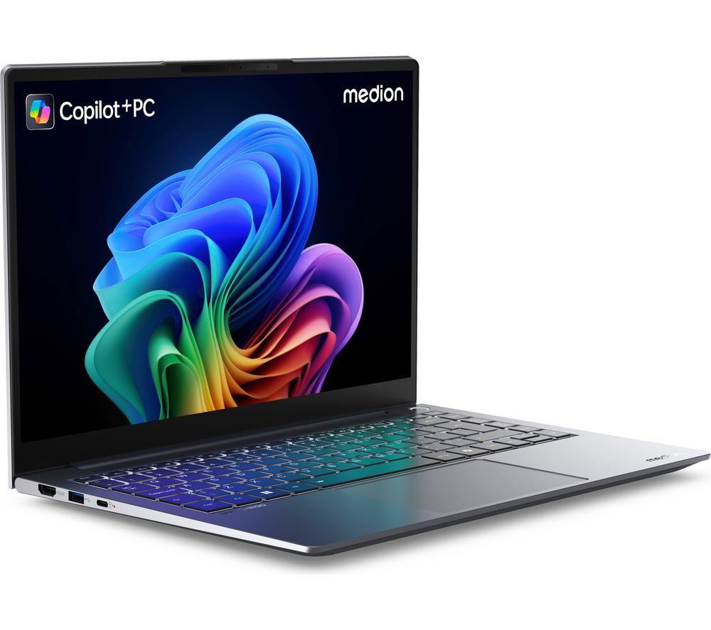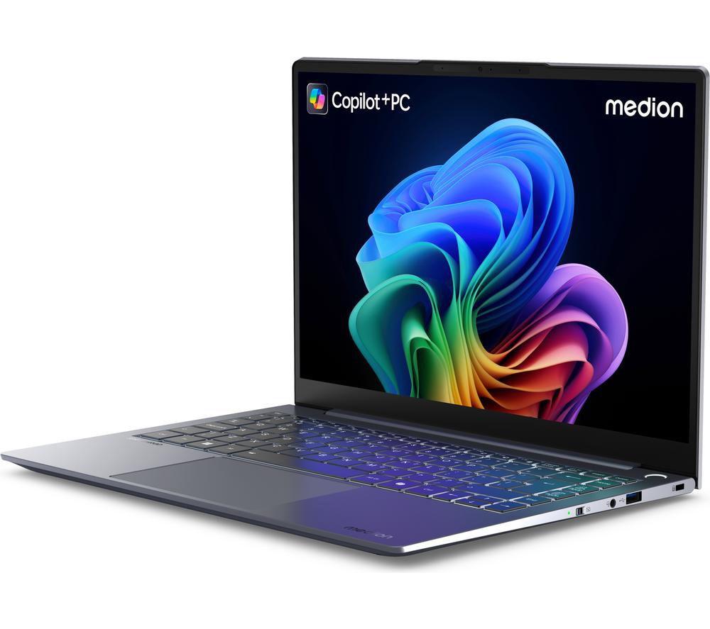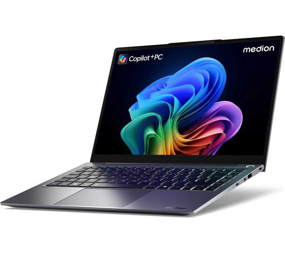 Get productive with this Medion laptop. Running the show is the Snapdragon X Elite processor. It's fast, efficient, and accelerated by AI to be even smarter. Perfect for cruising through work or school assignments. And its 17 hours of battery life means it isn't stopping anytime soon. With the Adreno integrated GPU, you can even take on photo editing or light gaming. And the 2.8K screen is perfect for even some after-work binges. Good to know - A Copilot+ PC brings the latest AI features so you can work and create faster than ever before - Load up websites and videos in no time thanks to the WiFi 7 - Its 16 GB of RAM lets you run multiple apps at the same time, including loads of browser tabs - Look your best on video calls with its Full HD webcam - Its fingerprint recognition is faster and safer than typing in a password - With its 512 GB of SSD storage, you've plenty of space for all your important stuff________________________________________________________________Snapdragon branded products are products of Qualcomm Technologies, Inc. and/or its subsidiaries.Please note:Cocreator is optimised for English text prompts. Recall is coming soon through a post-launch Windows Update. Live captions currently support translation for video and audio subtitles into English from 40+ languages. For more information please visit the Microsoft website at aka.ms/copilotpluspcs.